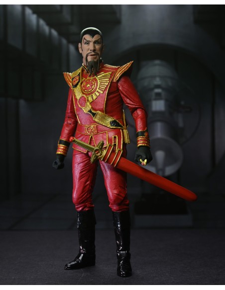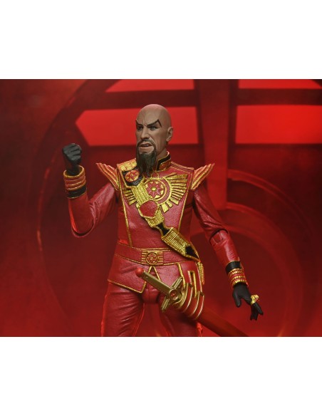 Patetici terrestri... chi può salvarti ora? La sinistra action figure di Ming the Merciless Ultimate arriva direttamente dal classico film di Flash Gordon del 1980! Questo malvagio nemico di Flash (interpretato dall'iconico attore Max von Sydow) è alto circa 7 pollici nella sua uniforme militare rossa ed è altamente articolato, con 3 teste intercambiabili, mani intercambiabili e spada con fodero
