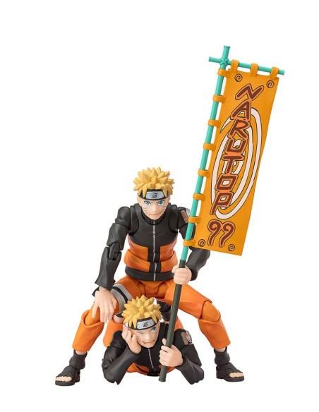 NARUTO UZUMAKI -NARUTOP99 Edition- si unisce a S.H.Figuarts! Basato su un'illustrazione del creatore della serie Masashi Kishimoto, include numerosi accessori per far emergere la vera essenza del personaggio, tra cui opzioni in stile Naruto come un volto sorridente con gli occhi chiusi e un volto comico.