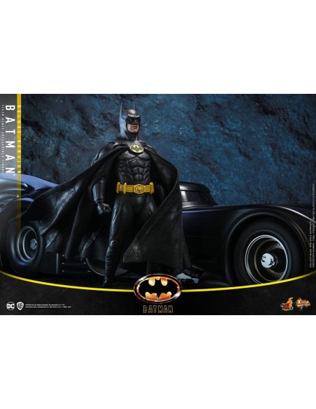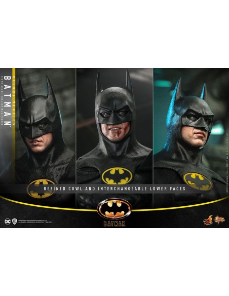 Ricreazione meticolosa e fedele della straordinaria apparizione di Micheal Keaton nei panni di Batman in Batman (1989), la figura in sesta scala altamente dettagliata presenta una testa di Batman di nuova concezione con bulbi oculari rotanti separati e design tecnico delle facce inferiori intercambiabili; un corpo specializzato che evidenzia la forma muscolosa di Batman; il costume di Batman di nuova concezione per imitare l'aspetto materiale; gadget unici per pipistrelli tra cui un rampino, un guanto con lanciafilo, Batarang con corda attaccata, ruote ninja, capsule fumogene; anche accessori tra cui una scarpa bianca con tacco, telecomando della Batmobile, timer per bombe e attrezzatura da pugno.