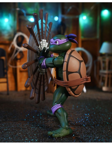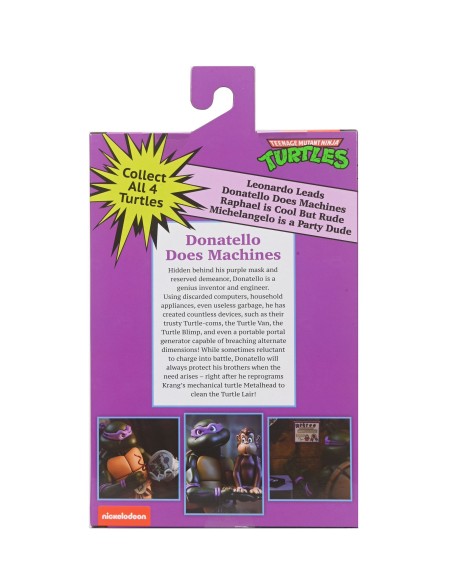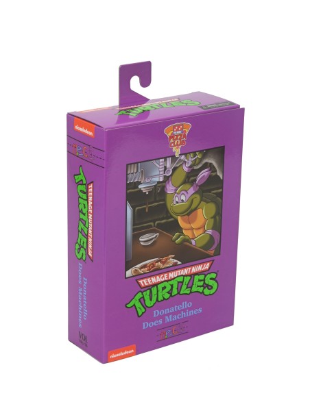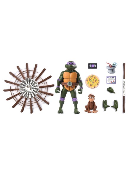 Basato sulla classica serie di cartoni animati Teenage Mutant Ninja Turtles degli anni '80! Donatello fa le macchine e riceve il trattamento "Ultimate" con questa action figure in scala da 7 pollici carica di accessori. Ha un bastone rotante, necessario per mettere KO Shredder e il Clan del Piede, più una pizza con cetrioli e avocado, burro di arachidi e altri accessori specifici dell'episodio! È inclusa anche una testa bonus di Roadkill Rodney compatibile con la figura di Roadkill Rodney rilasciata in precedenza! Viene fornito in una nuovissima confezione da collezione in stile Pizza Club VHS.