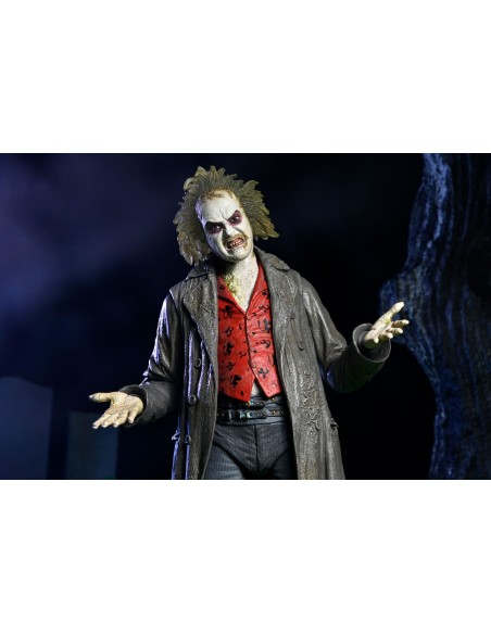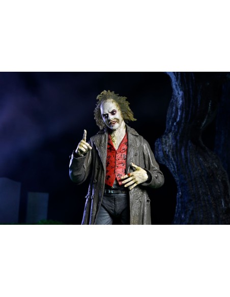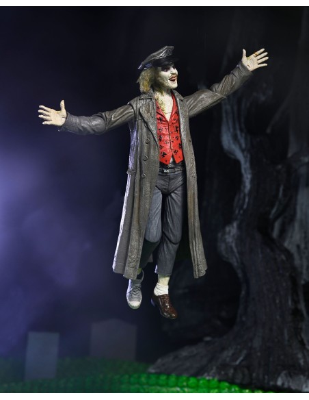 Hai bisogno di spaventare i vivi e farli scappare dal tuo rifugio confortevole? Basta dire "Betelgeuse" tre volte e evocherai il principale bio-esorcista dell'aldilà! Il fantasma più forte del classico film di Tim Burton del 1988 è tornato come action figure Ultimate NECA! Beetlejuice sfoggia il suo iconico look da "guida turistica" dalla sua prima rivelazione completa nel film, presentandosi ai Maitland come il famigerato bio-esorcista pronto a liberare la loro casa dai fastidiosi esseri viventi. Questa action figure altamente dettagliata, in scala da 18 cm, è articolata per consentire la posa e include una serie di accessori ultraterreni: diverse piastre facciali intercambiabili, cappello e mani, un topo morto, volantini di Betelgeuse, giornale e lanterna! Disponibile in un'edizione speciale per collezionisti.