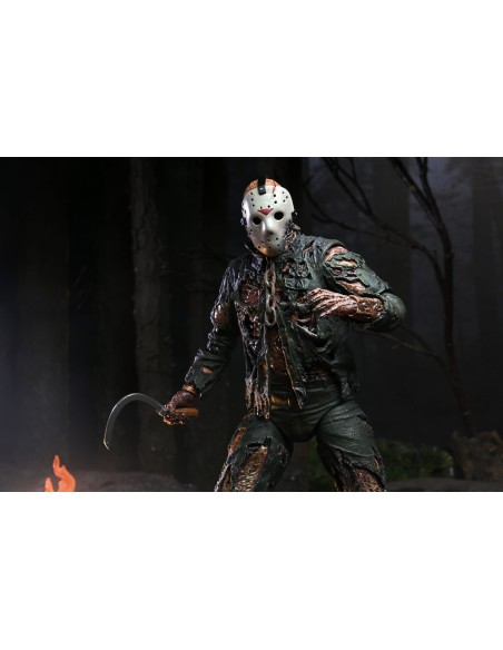 Dal franchise di Venerdì 13, siamo lieti di annunciare che la versione definitiva da collezione di Jason, così come appariva nella Parte 7, tornerà nella sua forma definitiva. Questa action figure articolata da 18 cm include due teste intercambiabili ed è ricca di accessori.