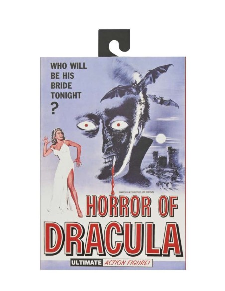 NECA presenta la prima di una serie di action figure della leggendaria Hammer House of Horror! Hammer ha prodotto film horror di riferimento fin dagli anni '50, uno dei quali è stato "L'orrore di Dracula". Il film ha conquistato il pubblico con il suo mix di colori vivaci, carnalità e violenza, e l'interpretazione di Dracula da parte di Christopher Lee è considerata un punto di riferimento con cui vengono misurate altre rappresentazioni. Questa action figure di Ultimate Dracula è alta 18 cm e include un mantello in tessuto rimovibile, teste e mani intercambiabili, una pala, un candelabro spento e un candelabro ardente.