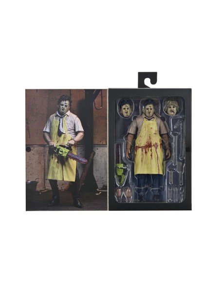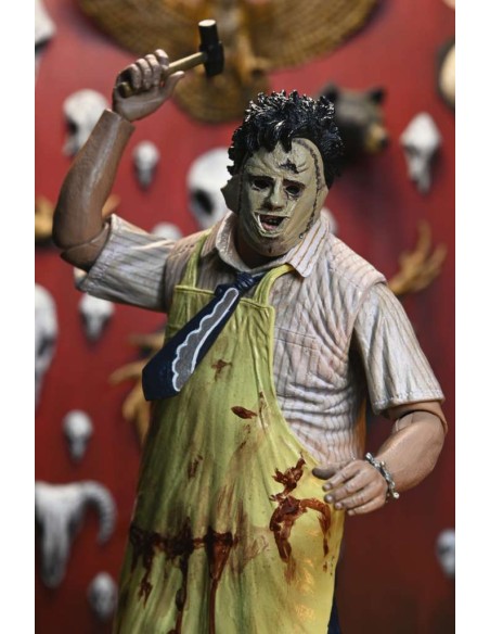 Neca celebra nuovamente il mitico "Non aprite quella porta", del 1974, con una nuova action figure Ultimate di Leatherface! La figura è alta circa 17 cm ed è dotata di diversi accessori: teste e mani intercambiabili, grembiule, motosega, martello e altro ancora!