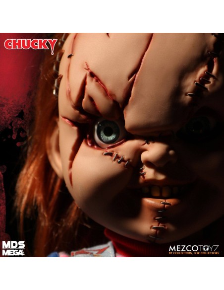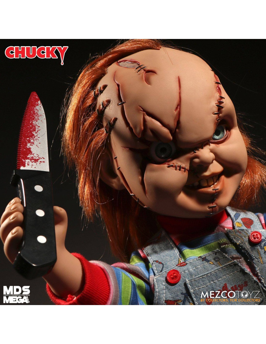 Chucky presenta realistici occhi di vetro e un coltello (di plastica) che sicuramente userà per scopi non buoni. Ogni Chucky è confezionato nella sua scatola con finestra ispirata al film, adatta ai collezionisti.