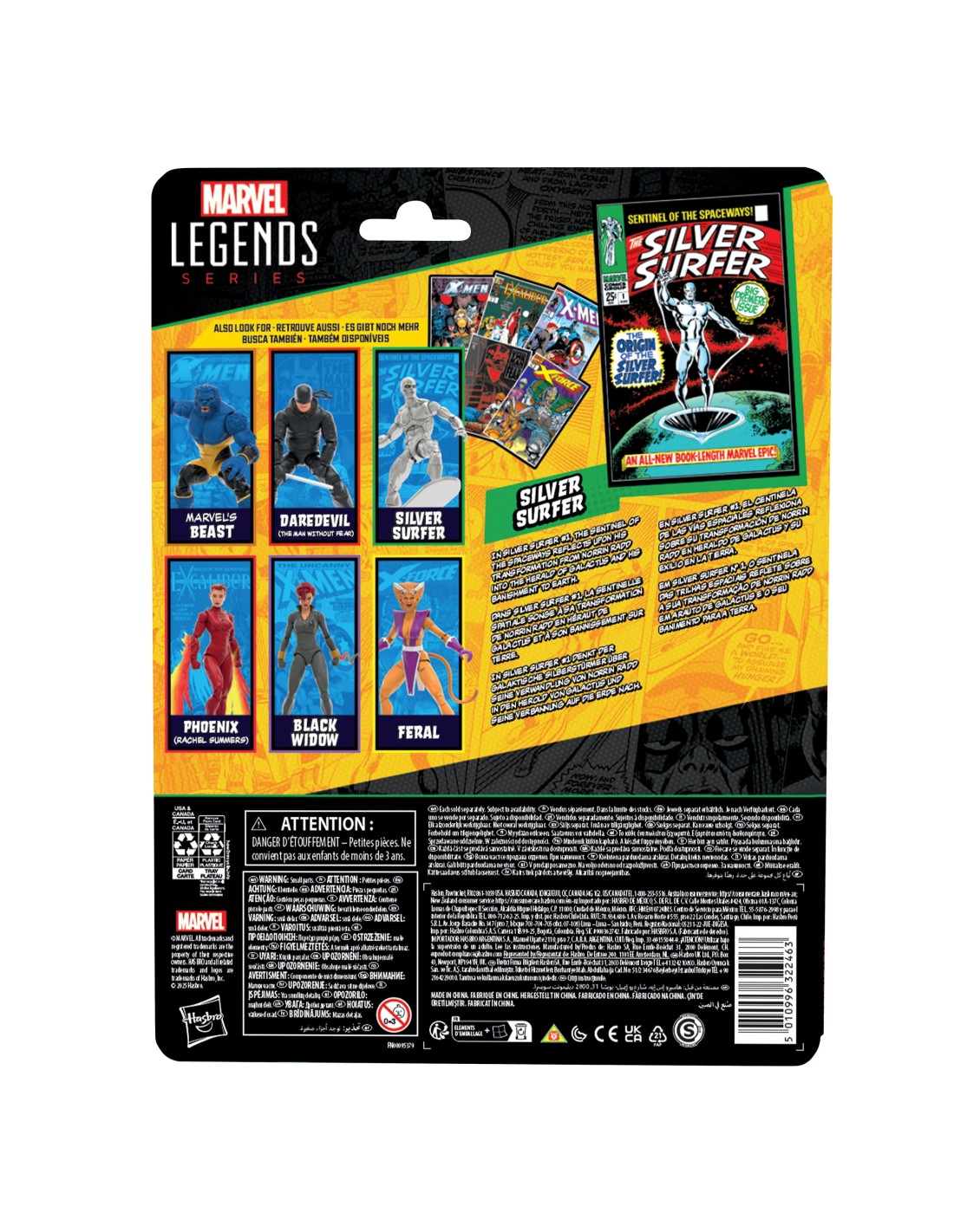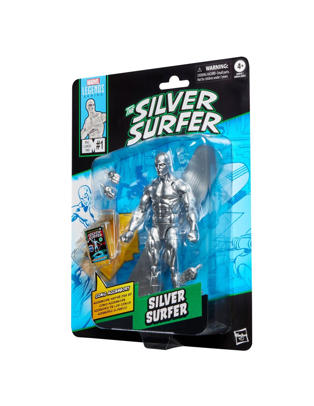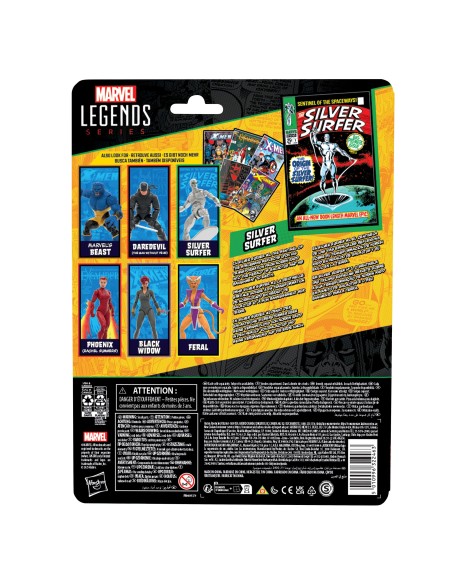 Porta l'emozione e la meraviglia dell'Universo Marvel nella tua collezione con la action figure Hasbro Marvel Legends Silver Surfer! Realizzata nei minimi dettagli per riprodurre l'aspetto del personaggio nei fumetti Marvel Silver Surfer n. 1 (1968) e Fantastic Four, questa action figure Marvel da collezione in scala 15 cm è completamente articolata, con un design di alta qualità e testa, braccia e gambe snodabili. Questo set di action figure Marvel include 6 accessori, tra cui 2 mani e una testa alternative, oltre a un accessorio in plastica da fumetto in scala 15 cm con la copertina di Silver Surfer n. 1 (1968). La scala 15 cm delle action figure Hasbro Marvel le rende perfette per posare ed esporre nelle collezioni dei fan. Reinventa le scene ispirate ai fumetti sul tuo scaffale con le action figure Marvel Legends e gli oggetti da collezione Marvel.