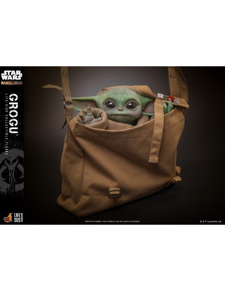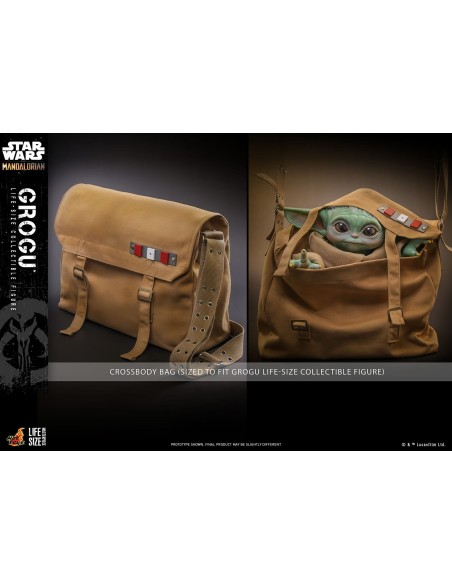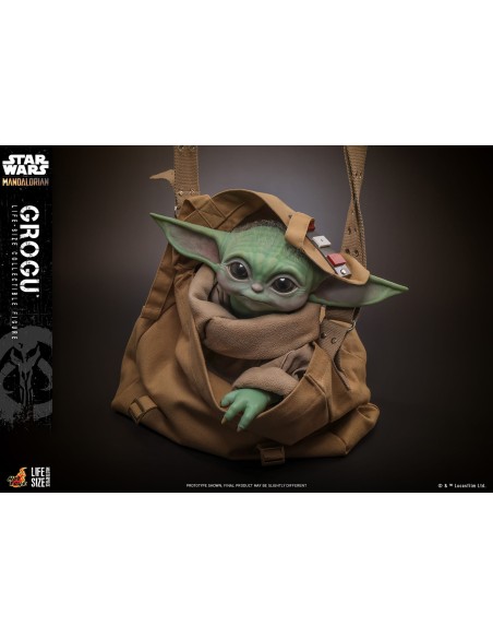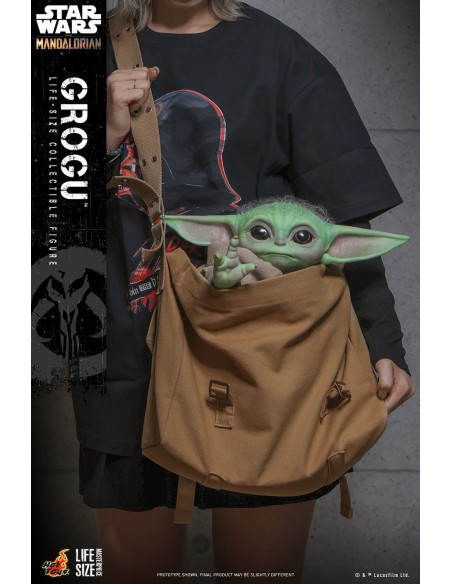 La statuetta da collezione, sapientemente realizzata, si basa sull'aspetto di Grogu in The Mandalorian, e presenta una testa scolpita di recente con capelli bianchi in tessuto, un corpo di nuova concezione con braccia e gambe articolate per consentire ai collezionisti di posare Grogu in modo realistico, una tunica in tessuto accuratamente realizzata e una borsa a tracolla che qualsiasi genitore di Grogu può utilizzare per viaggiare con Grogu in un clan di due persone, ovunque, senza confini.