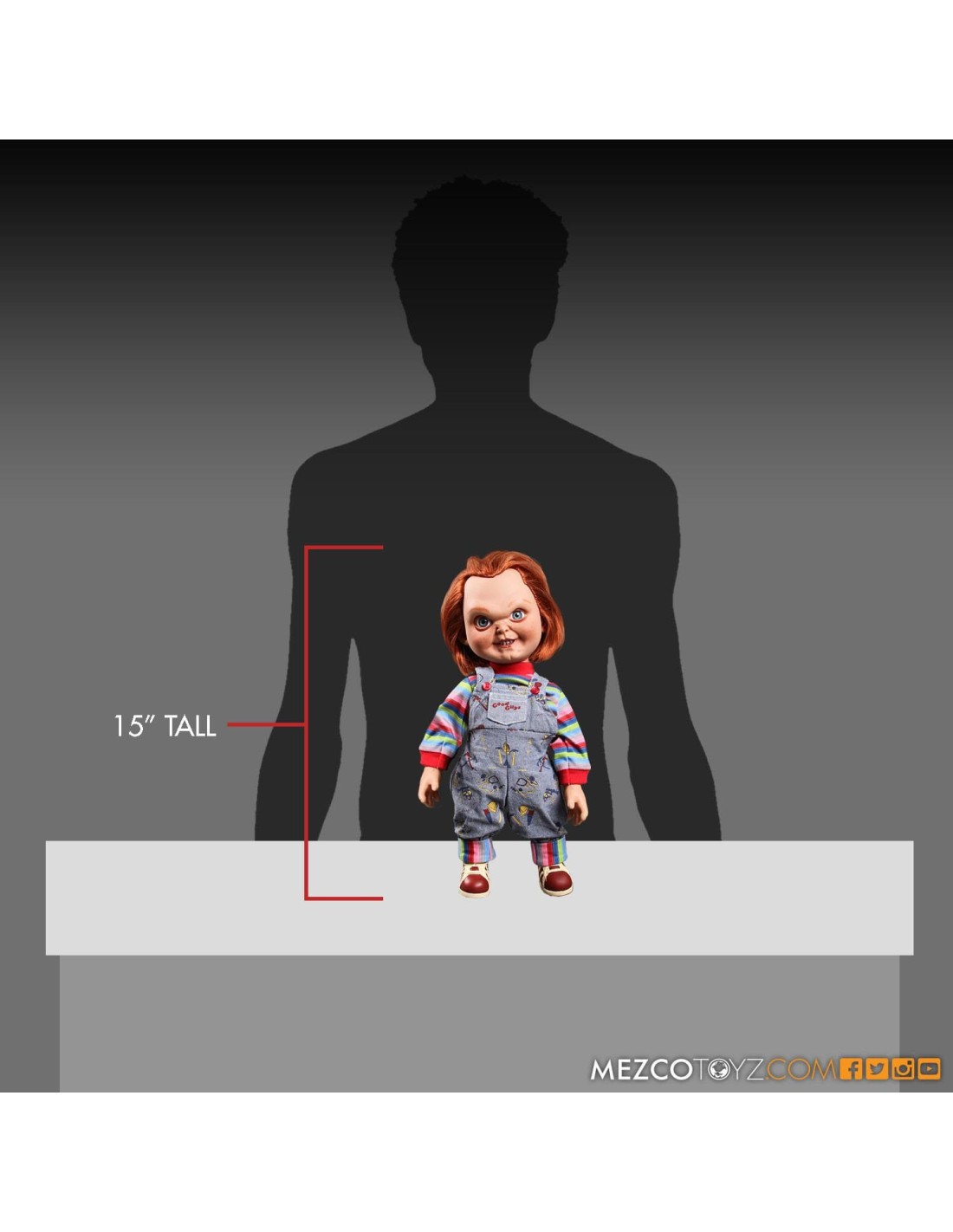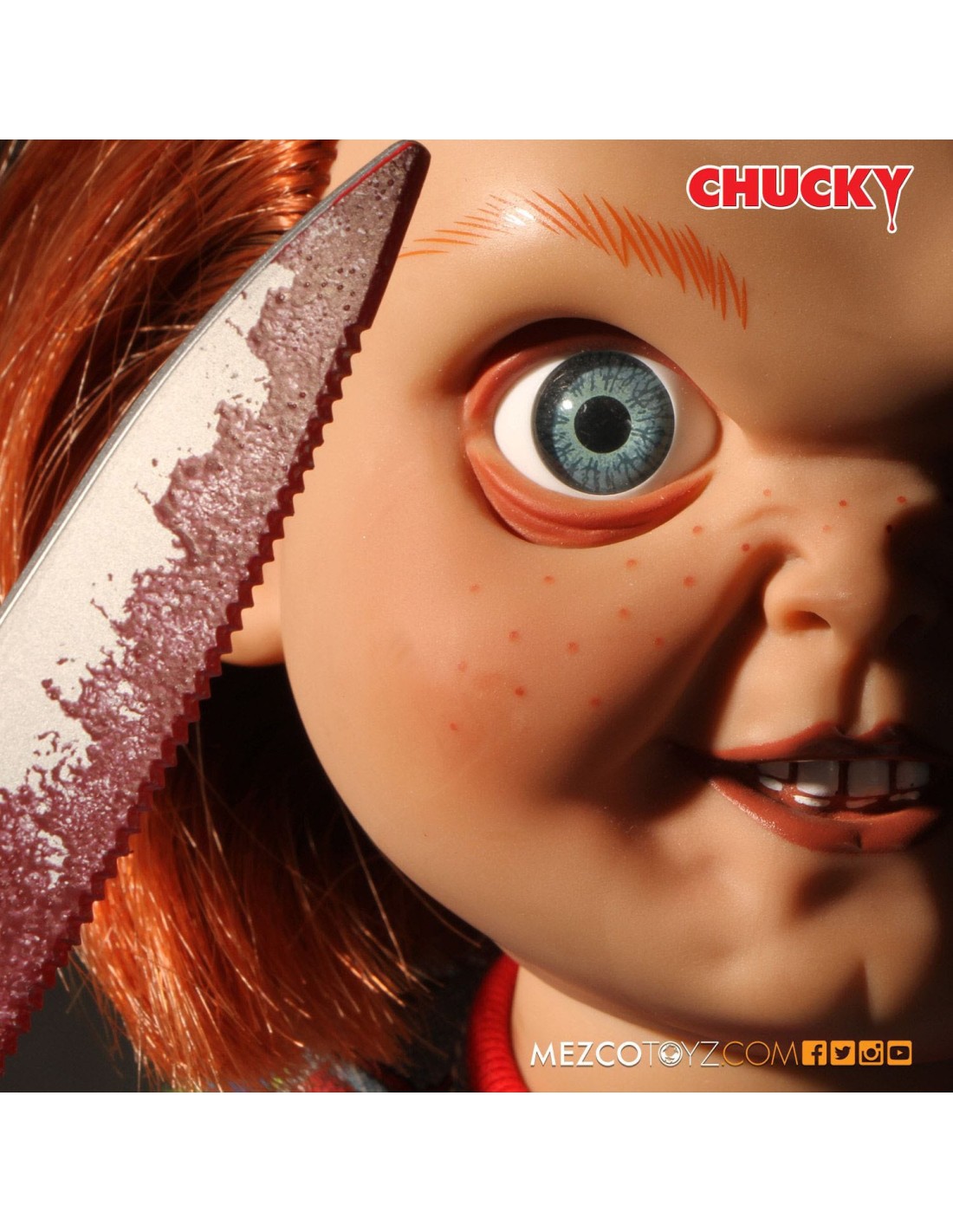 Protagonista dei film "LA BAMBINA", Chucky è alto quaranta centimetri e sfoggia veri abiti di stoffa dei Buoni, undici punti di articolazione, i suoi caratteristici capelli arancioni e realistici occhi di vetro. Ogni Chucky è confezionato in una scatola con finestra, ideale per i collezionisti, ispirata al design della scatola originale vista nei film.