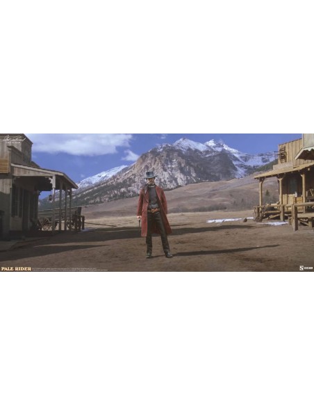 Basato sull'apparizione di Clint Eastwood nel classico film western Pale Rider, il Preacher Sixth Scale Figure presenta un ritratto accuratamente realizzato del cavaliere solitario con il suo iconico sguardo d'acciaio e un cappello non rimovibile. Indossa anche un costume in tessuto su misura composto dal suo spolverino rosso invecchiato, un gilet nero abbottonato, una camicia elegante con colletto, un fazzoletto da collo e pantaloni neri. Una cintura antiproiettile in finta pelle e stivali scolpiti con speroni completano il look distintivo del Preacher.