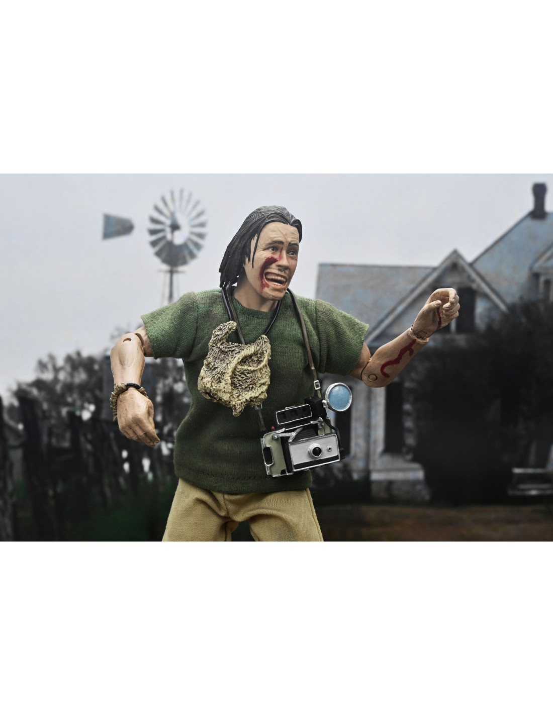 Festeggia il 50° anniversario di Non aprite quella porta! Il classico film slasher del 1974 di Tobe Hooper ha cambiato per sempre il cinema horror. Possiedi un pezzo della sua storia con questa action figure vestita da Hitchhiker della NECA! Questa action figure dell'edizione anniversario del cannibale assassino, ladro di tombe e fratello di Leatherface, è vestita con abiti in tessuto su misura simili alle linee di giocattoli retrò che hanno contribuito a definire il mercato delle action figure su licenza negli anni '70. La action figure da 8 pollici completamente snodabile include accessori per macchina fotografica, borsa e rasoio a mano libera.