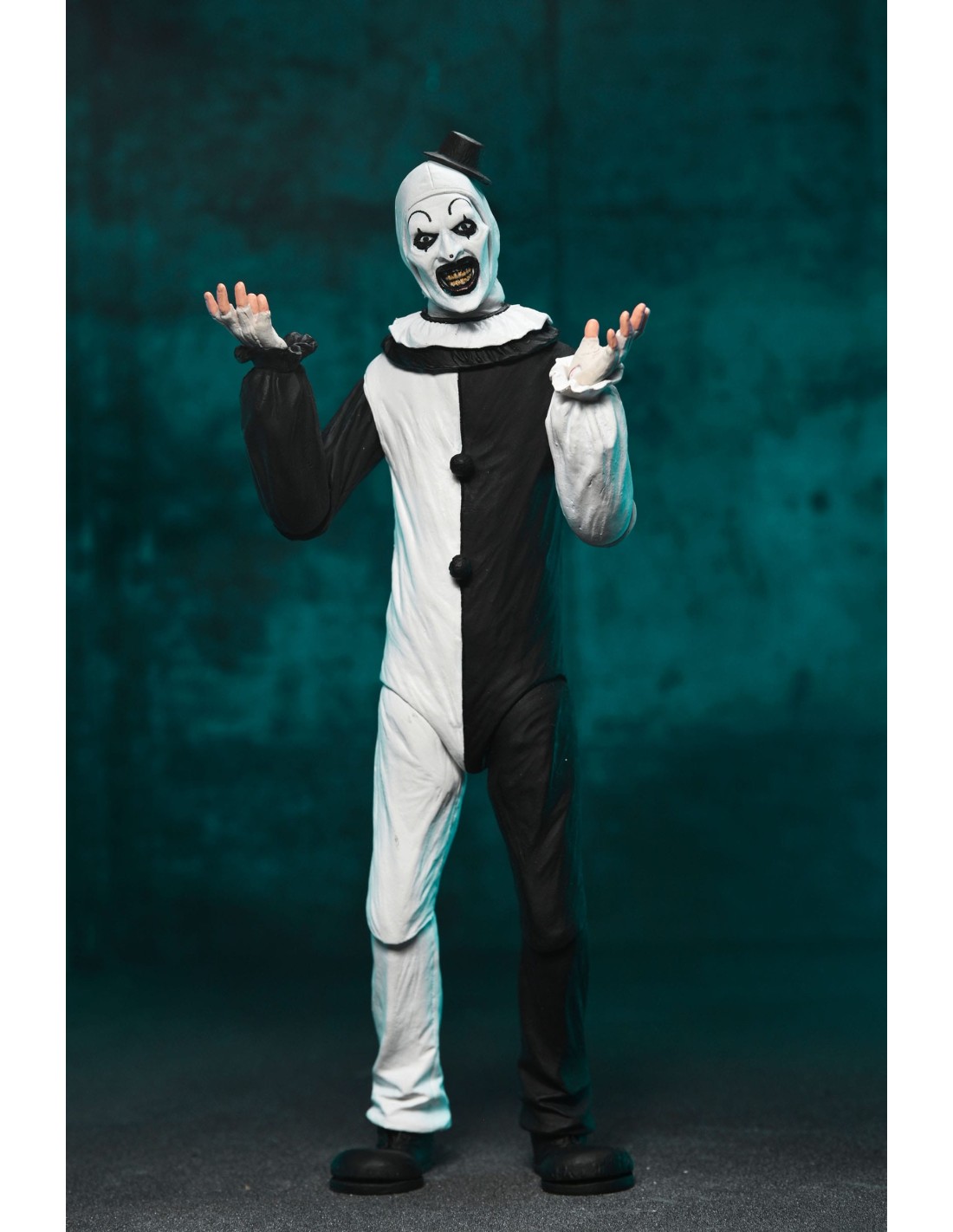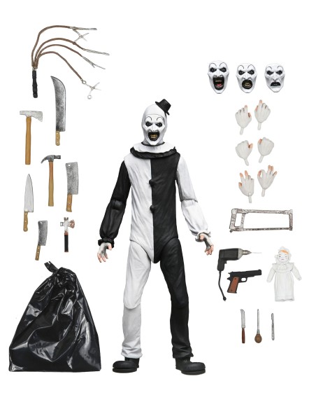 L'enigmatico Art the Clown è qui per infestare i vostri scaffali. L'iconico cattivo di Terrifier di Damien Leone riceve il trattamento Ultimate di NECA. Catturando ogni inquietante dettaglio dello slasher silenzioso, questa action figure articolata da 18 cm include espressioni e mani intercambiabili. In più, un inquietante arsenale di armi e accessori! Viene fornito in una confezione con finestra frontale adatta ai collezionisti, perfetta per la vostra esposizione horror.
