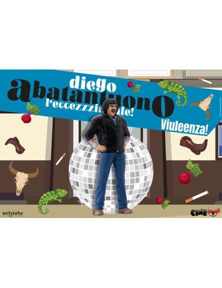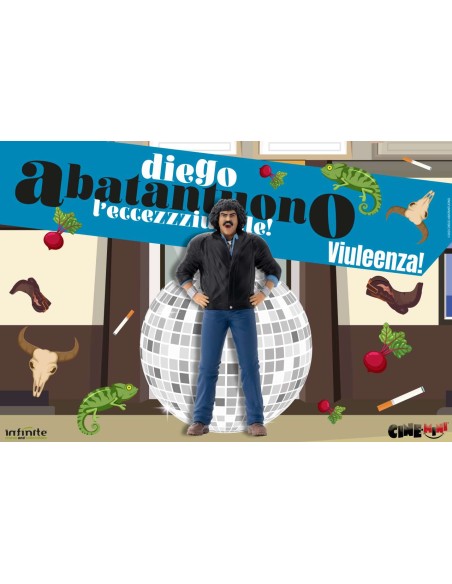 Realizzata in PVC di alta qualità e alta circa 12 cm, la statua è progettata per essere immediatamente riconoscibile. L’espressione, la postura e i dettagli sono curati per richiamare le scene più iconiche dei film di Abatantuono, mantenendo quella carica comica che lo ha reso celebre.