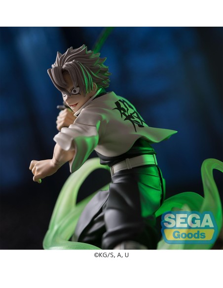Questa figure cattura perfettamente l’essenza di Sanemi: una posa combattiva, muscoli tesi e uno sguardo feroce che trasmette tutta la sua natura impulsiva e devastante. Il vero punto di forza, visibile anche dalle immagini ufficiali, è lo straordinario effetto vento traslucido che avvolge il personaggio, ricreando visivamente le tecniche del Respiro del Vento.