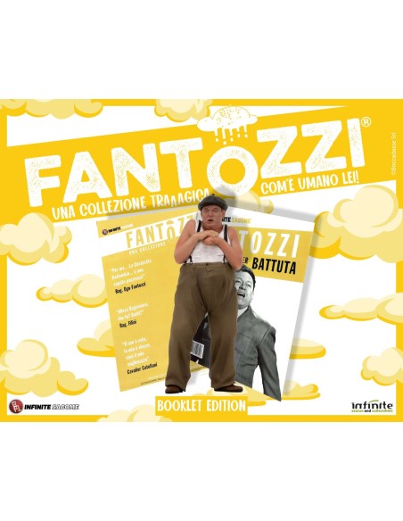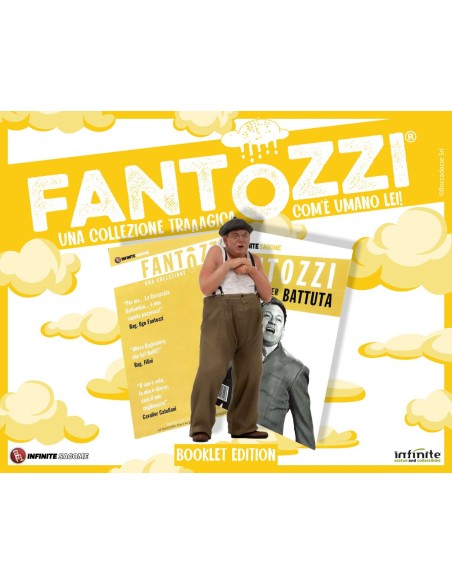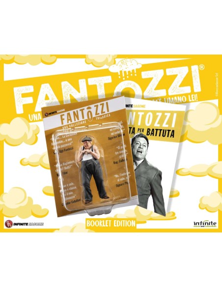 FANTOZZI COME E’ UMANO LEI! - FANTOZZI AH! CONGIUNTIVO! - FANTOZZI …ALLA BERSAGLIERA - FILINI BATTI LEI? – sono le quattro mini figure che in questa nuova edizione esclusiva sono arricchite con un libretto che raccoglie tutte le battute famose e i momenti “tragicamente” memorabili del Rag. Ugo Fantozzi. Ogni personaggio è in blister singolo con libretto incluso all’interno.