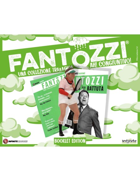FANTOZZI COME E’ UMANO LEI! - FANTOZZI AH! CONGIUNTIVO! - FANTOZZI …ALLA BERSAGLIERA - FILINI BATTI LEI? – sono le quattro mini figure che in questa nuova edizione esclusiva sono arricchite con un libretto che raccoglie tutte le battute famose e i momenti “tragicamente” memorabili del Rag. Ugo Fantozzi. Ogni personaggio è in blister singolo con libretto incluso all’interno.