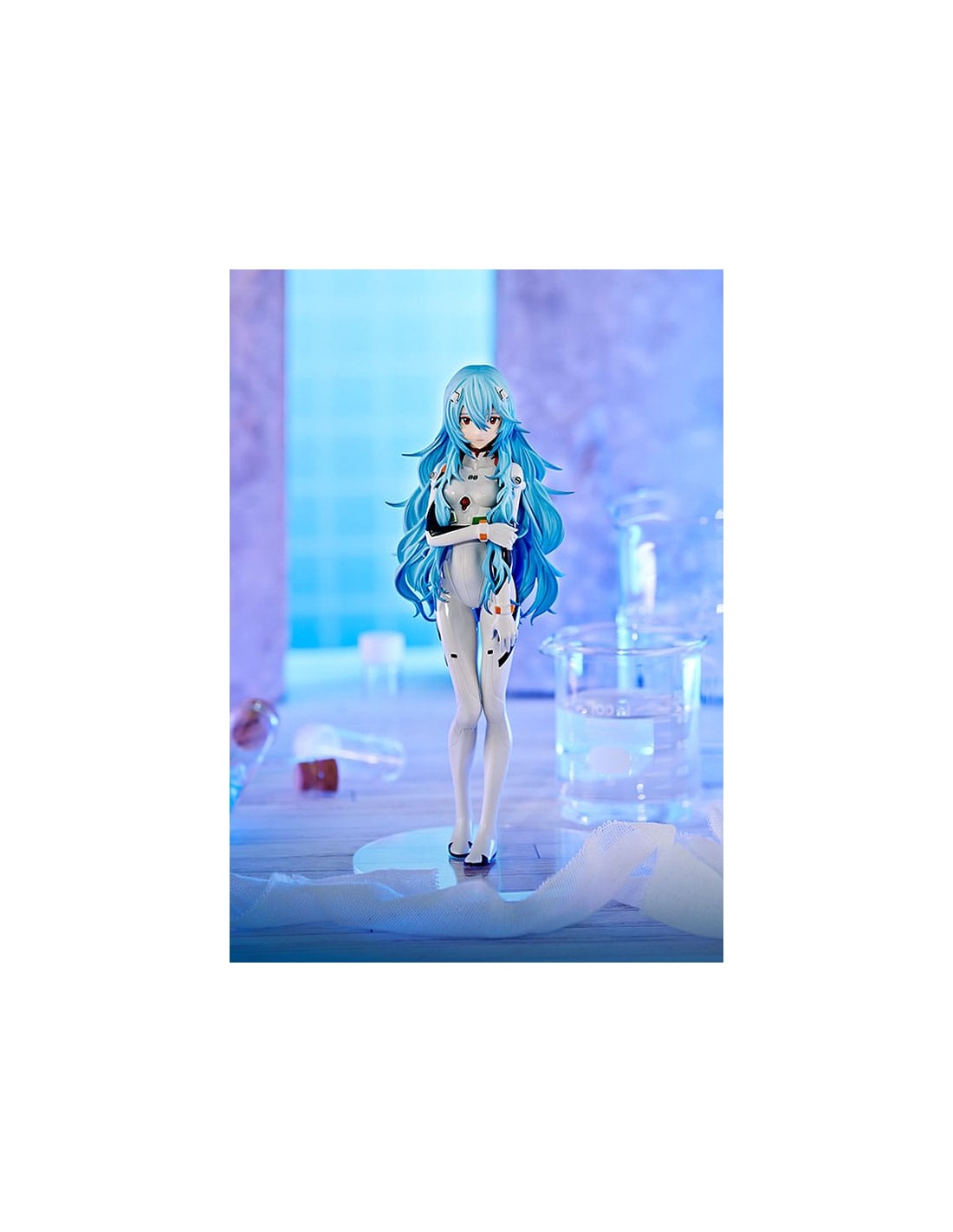 Una riedizione della statuetta POP UP PARADE di Rei Ayanami con i capelli lunghi.
