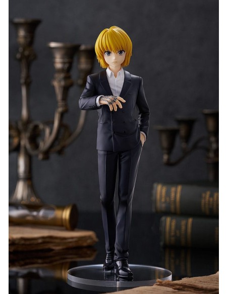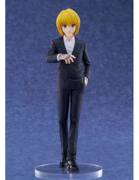 GOODSMILELa figure Kurapika Suit Ver. Pop Up Parade L Size da Hunter x Hunter è prodotta da Good Smile Company e rappresenta il personaggio in elegante completo nero ispirato agli archi più maturi della serie. Alta circa 22 cm, offre dettagli accurati e presenza scenica simile a una figure in scala. Perfetta per collezionisti di figure anime