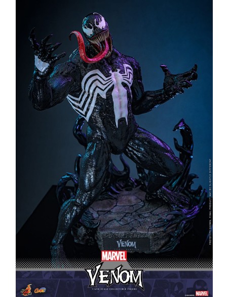 La figura da collezione estremamente dettagliata è sapientemente realizzata per rappresentare Venom della Marvel Comics. Presenta una testa scolpita in modo sorprendentemente sorridente, così come una testa con una bocca minacciosa e tre lingue sporgenti intercambiabili. Alto circa 39 cm e caratterizzato dagli iconici emblemi del ragno bianco, il corpo specializzato mostra un alto livello di scultura dettagliata, specialmente sulla consistenza della pelle. Include diversi accessori simbionti con tentacoli che possono essere attaccati alla schiena della figura, migliorando la presenza dinamica di questo personaggio iconico. La figura da collezione è inoltre dotata di una base diorama a tema simbionte che dà vita alla scena del fumetto.
