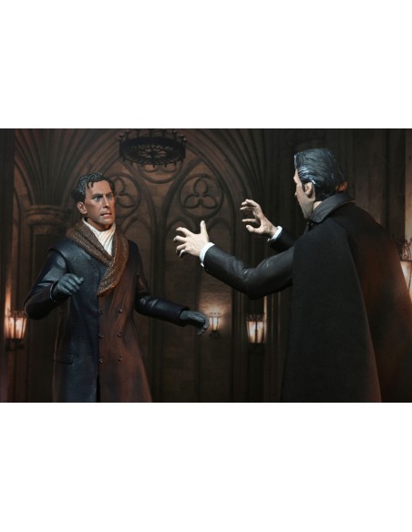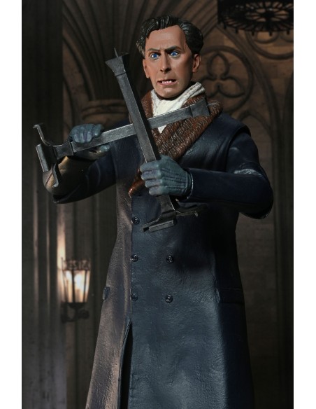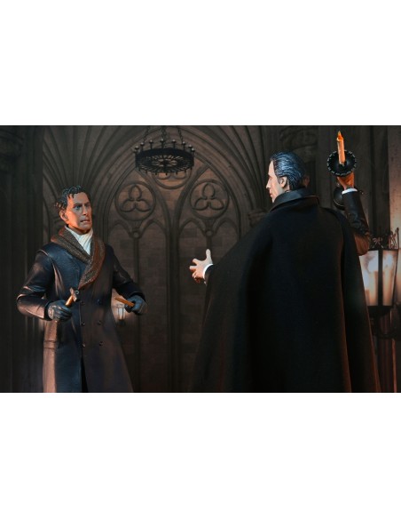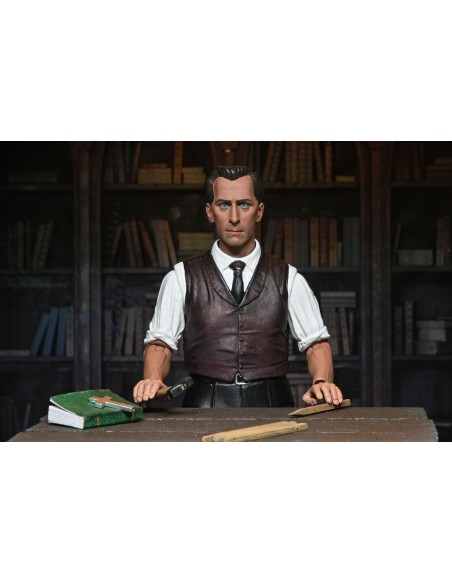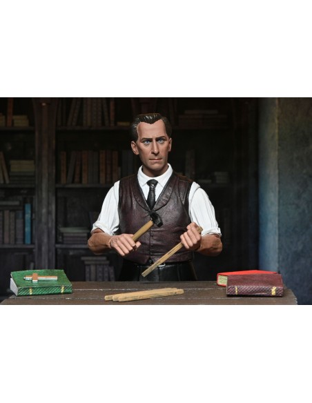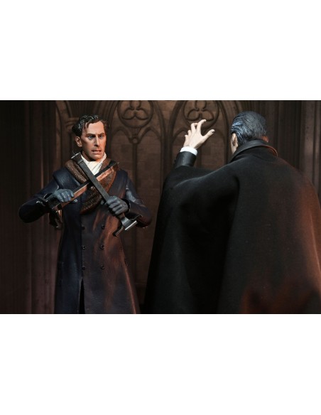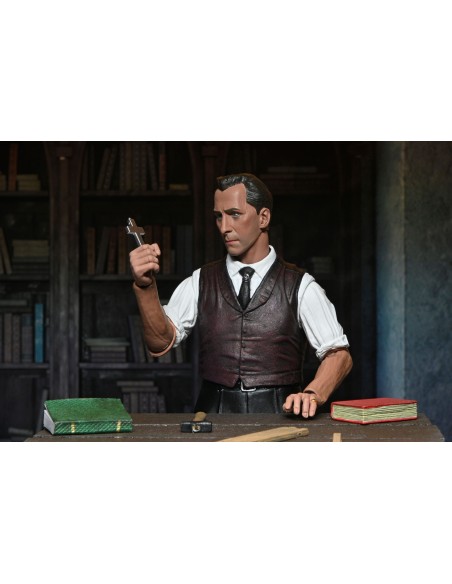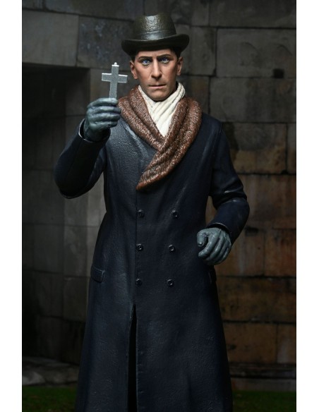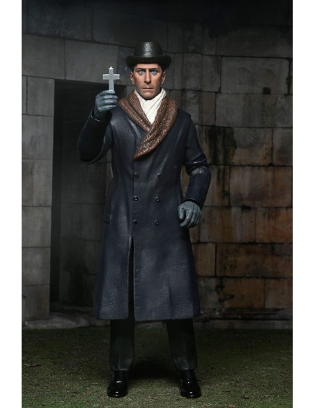Peter Cushing interpreta l'iconico personaggio Van Helsing, che viene mandato a distruggere Dracula, interpretato da Christopher Lee. Questo Ultimate Van Helsing è in scala da 7 pollici e presenta una vita intercambiabile per un look alternativo con il suo gilet o il suo lungo cappotto.