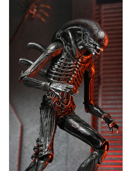 Dopo un intenso scontro a fuoco che ha portato alla morte dell'alieno, il suo sangue acido brucia un buco nel pavimento, sospendendo l'alieno nel soffitto del laboratorio della nave. Questa action figure Ultimate Xenomorph XX121 in scala da 7 pollici presenta una mascella articolata, una mascella interna scorrevole e una coda cablata per posare. Gli accessori includono più mani intercambiabili, facehugger e chestburster. Viene fornito in una confezione con finestra adatta ai collezionisti con sportello anteriore apribile.