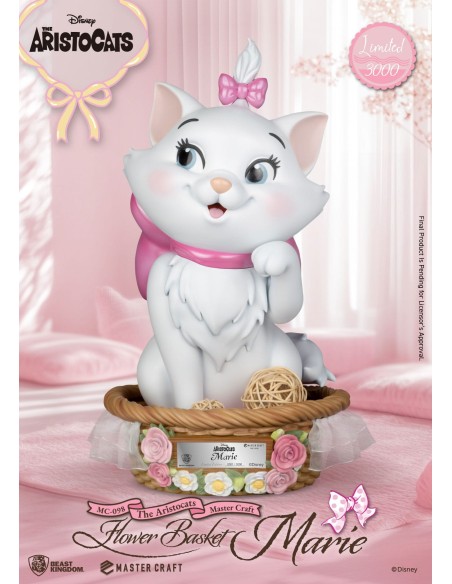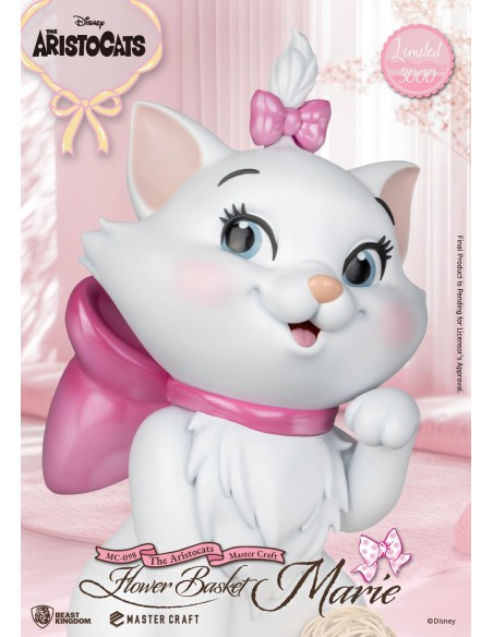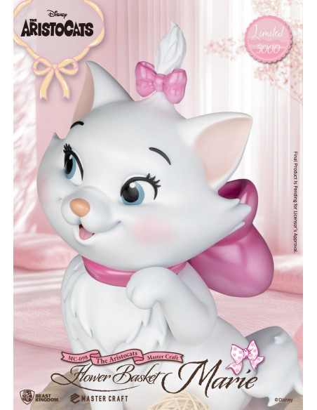 Da Gli Aristogatti della Disney, la dolce Marie, Seduta con grazia in un cesto intrecciato, arriva nella serie Master Craft di Beast Kingdom. Il suo caratteristico fiocco rosa, le sue delicate sfumature e il suo fascino aristocratico sono ricreati meticolosamente.