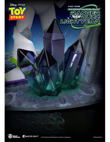 Buzz Lightyear torna in forma eroica con questo oggetto da collezione premium della serie Master Craft di Beast Kingdom. Sapientemente scolpita e dipinta a mano, la statua cattura la postura sicura di Buzz, l'iconica tuta bianco-verde-viola e dettagli dettagliati come bottoni sul petto, emblemi e ali estese.