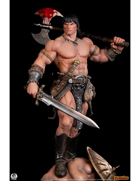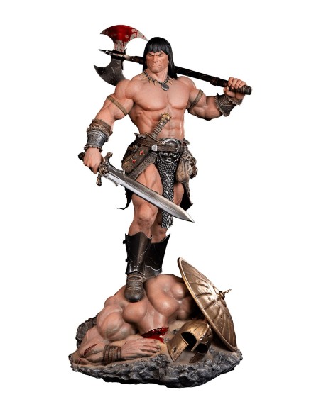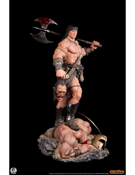 Alto quasi 60 cm, Conan brandisce un'enorme ascia insanguinata appoggiata sulla spalla, mentre brandisce contemporaneamente un minaccioso spadone nella mano destra. È in piedi, con la fronte aggrottata, sulla schiena di un nemico appena decapitato, e sembra osservare la carneficina intorno a lui con la cupa intensità che ha caratterizzato il personaggio nel corso dei suoi decenni di popolarità.