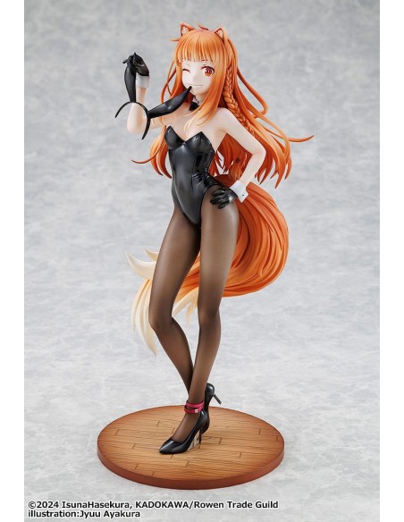 La figure raffigura Holo vestito con un audace costume da coniglio, basato su una nuova illustrazione realizzata dall'illustratore della serie di light novel originale, Jyuu Ayakura.