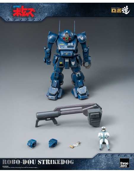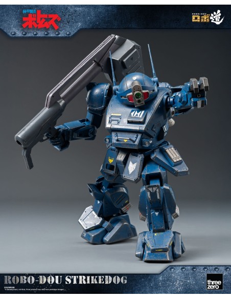 Il quarto oggetto ROBO-DOU basato sul classico anime "Armored Trooper VOTOMS" è Strikedog, un Armored Trooper progettato appositamente per i Perfect Soldiers e pilotato dalla seconda PS Ypsilon della Covert Society! Sebbene non sia in scala, essendo un Heavy Weight Armor Trooper, ROBO-DOU Strikedog replica fedelmente la differenza di dimensioni con il Mid Weight Armored Trooper ROBO-DOU Scopedog, già rilasciato.