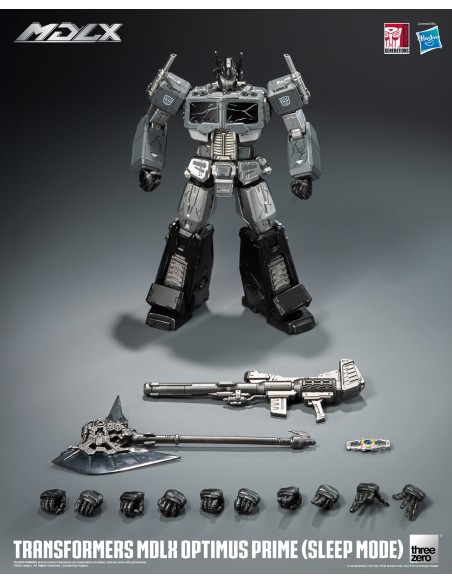 L'MDLX Optimus Prime (Modalità Riposo) è alto circa 18 cm, con circa 48 punti di articolazione e una struttura in metallo pressofuso. Effetti di verniciatura danneggiati e invecchiati in battaglia sono stati aggiunti alla maschera da battaglia, alle finestre sul petto e agli arti della figura. Questa figura è stata ridisegnata dal direttore artistico di threezero Kelvin Sau, con i suoi design iconici remixati per incorporare un'estetica meccanica iperdettagliata. Allo stesso tempo, presenta l'esclusivo sistema di telaio in lega di zinco pressofusa e plastica di livello ingegneristico di threezero, che ne migliora la giocabilità tattile e la resistenza.