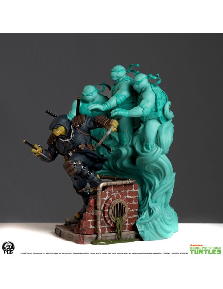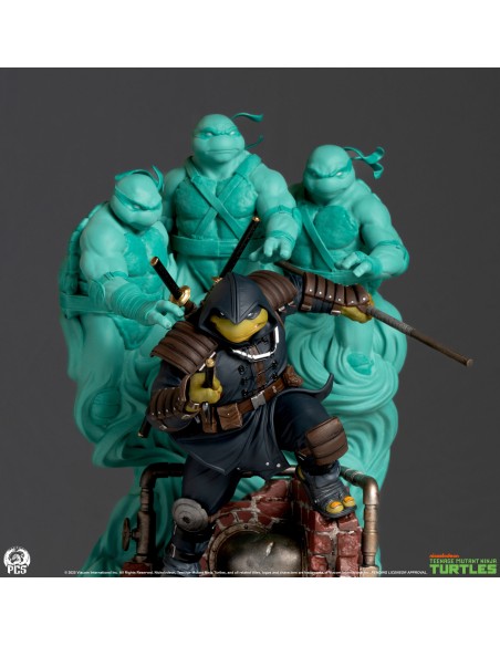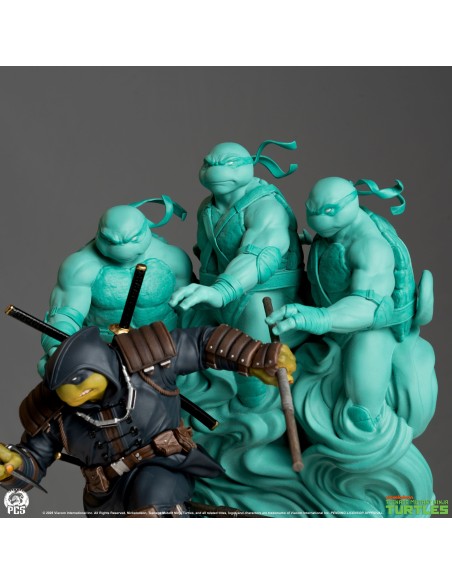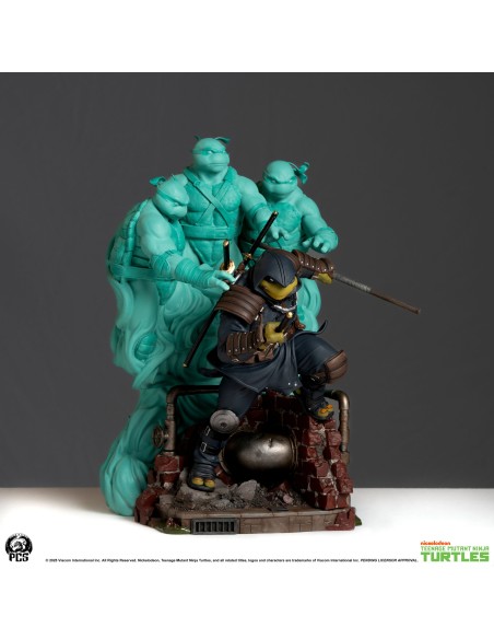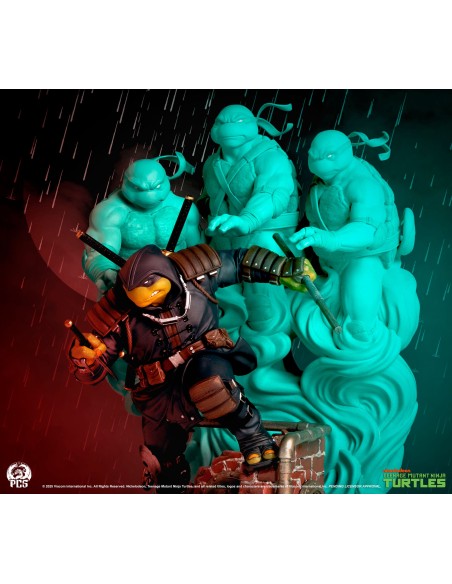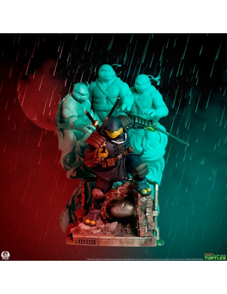 Alta poco meno di 25 cm, questa rappresentazione dinamica dell'ultima tartaruga sopravvissuta è pensata per adattarsi a qualsiasi collezione. Impugnando una serie di armi raccolte dai suoi fratelli caduti, il Ronin è in posa pronto all'azione, mentre i fantasmi dei suoi fratelli lo sostengono nella sua straziante missione di vendetta.