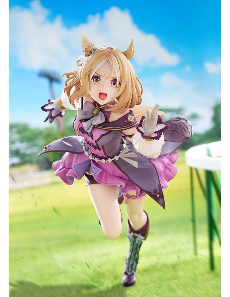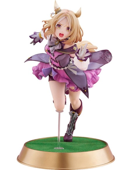 Dal gioco "Umamusume: Pretty Derby" arriva una figure in scala 1/7 di Narita Top Road! La figure è basata sull'illustrazione della carta di supporto SSR di Narita Top Road. La gentile e seria Umamusume è stata scolpita in modo dinamico, in posa come se stesse correndo sull'erba a tutta velocità, con un'espressione determinata sul viso. La sua iconica tenuta da corsa rosa e viola The Proud Road è stata scolpita con cura, con i dettagli di stivali, maniche e accessorio per le orecchie realizzati con materiali traslucidi. La coda e i capelli color castagna sono stati dipinti con calde tonalità sfumate per dare vita alla figura. Un segno a ferro di cavallo è stato incluso con il supporto per la sua gamba destra. Assicurati di aggiungere questa interpretazione dell'instancabile ricerca della vittoria di Narita Top Road alla tua collezione!