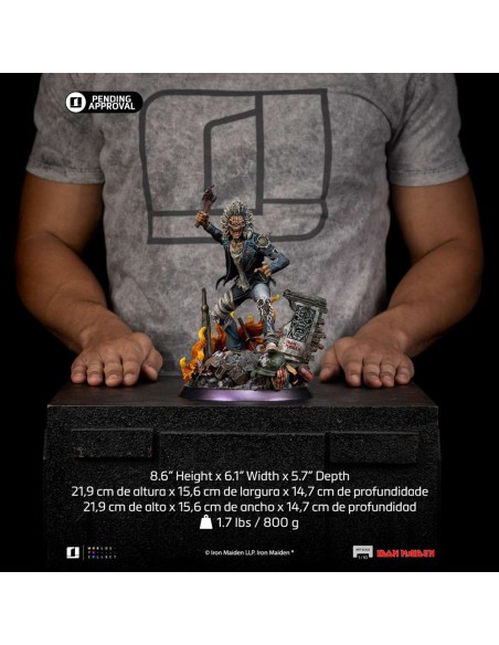 Iron Studios presenta con orgoglio la statua "Eddie 50th Year Anniversary – Iron Maiden – Art Scale 1/10", in onore della leggenda dell'heavy metal e mascotte eterna della band. In questa edizione commemorativa, Eddie è raffigurato con un look speciale che combina elementi delle sue numerose incarnazioni nel corso dei decenni. Realizzata in resina di alta qualità, finemente scolpita e dipinta a mano, la statua in scala 1/10 presenta una base a tema con il logo del 50° anniversario degli Iron Maiden. Un vero oggetto da collezione per i fan degli Iron Maiden, che celebra cinquant'anni di musica, attitudine e ribellione attraverso immagini iconiche.