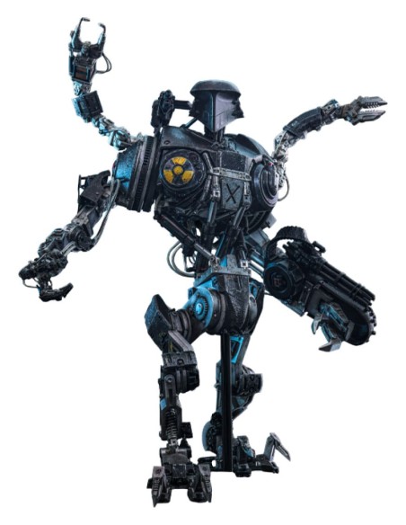 Questa action figure è incredibilmente dettagliata e presenta un nuovo design meccanico che vanta oltre 200 componenti e più di 100 punti di articolazione. Le applicazioni di vernice sono splendidamente valorizzate da effetti di invecchiamento, che catturano perfettamente il suo aspetto sullo schermo. È dotato di due moduli testa e collo intercambiabili: uno con testa articolata e l'altro con funzione di illuminazione. La figure presenta due braccia meccaniche più grandi accanto a due più piccole, ciascuna meticolosamente realizzata per replicare l'aspetto pesantemente armato visto nel film. L'impressionante arsenale di armi sulle braccia include una mitragliatrice rotante a sei canne, un ariete estensibile, mani articolate a tre artigli, pinze e una fiamma ossidrica, il tutto progettato con una straordinaria articolazione. La vita è progettata per ruotare di 360 gradi ed è dotata di aste idrauliche che ne consentono il sollevamento. Il torace presenta un portello apribile che consente di agganciare una rotaia, ricreando l'iconica scena del film in cui il portello si apre per caricare le scorte di droga. L'armatura per le spalle è dotata di un cannone a spalla staccabile e di una funzione di illuminazione a LED. Gli accessori inclusi con la figure sono un telecomando e un supporto per figure appositamente progettato.
