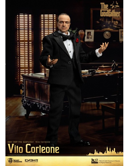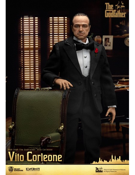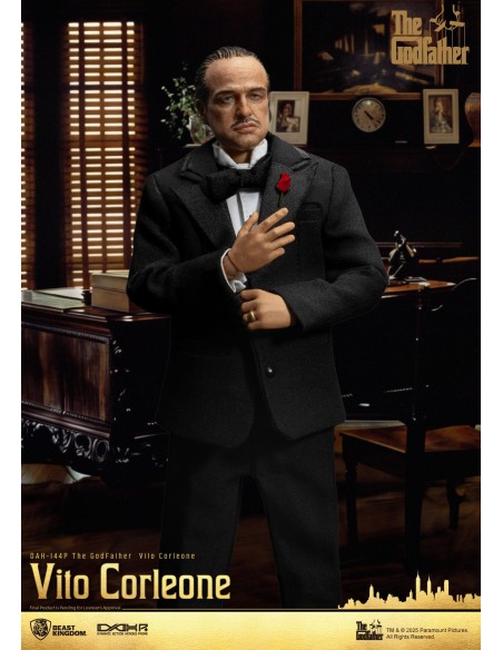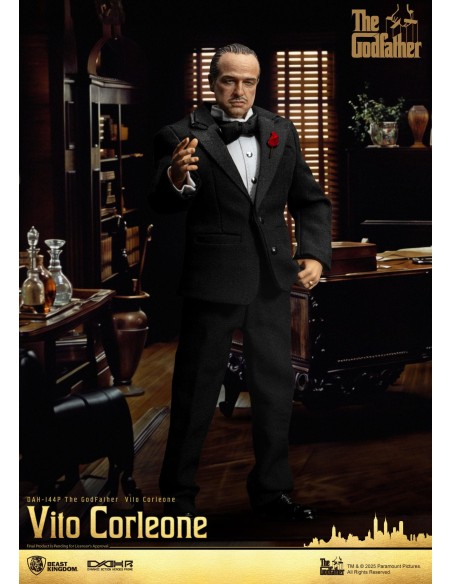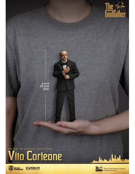 "Gli farò un'offerta che non potrà rifiutare." — Vito Corleone Dal leggendario capolavoro mafioso Il Padrino, Beast Kingdom presenta con orgoglio una nuova aggiunta alla linea DAH (Dynamic 8ction Heroes): l'iconico patriarca della famiglia Corleone, Vito Corleone, portato in vita con incredibili dettagli e grande capacità di posa. Grazie alla modellazione 3D avanzata e alla maestria artigianale, questa action figure da collezione ricrea fedelmente il look più iconico di Vito. Indossa un abito nero su misura in vero tessuto, abbinato a una camicia bianca, un papillon nero e una rosa rossa appuntata al petto, emanando un senso di autorevolezza e eleganza. La caratteristica acconciatura tirata all'indietro e lo sguardo severo sono accuratamente scolpiti e dipinti a mano, catturando la compostezza e il predominio del leggendario Don. Con circa 22 punti di articolazione e quattro set di mani intercambiabili, i collezionisti possono ricreare diverse pose classiche. Gli accessori includono una poltrona decorata e il fedele gatto di Vito, che permettono ai fan di rivivere le scene più iconiche del film. Vito Corleone rappresenta non solo un'eredità familiare, ma un simbolo che ha segnato un'epoca nella storia del cinema. Lascia che questa leggenda senza tempo diventi il fulcro della tua collezione.