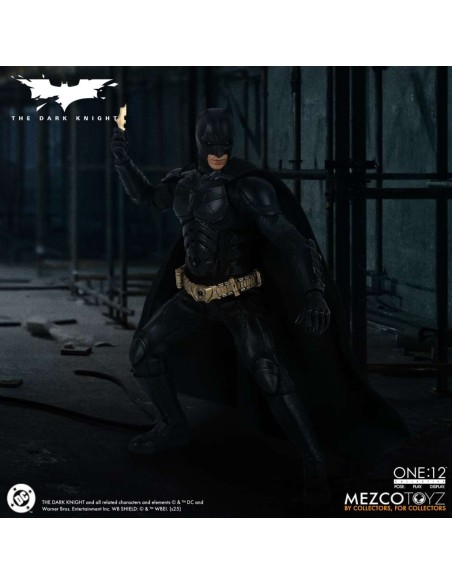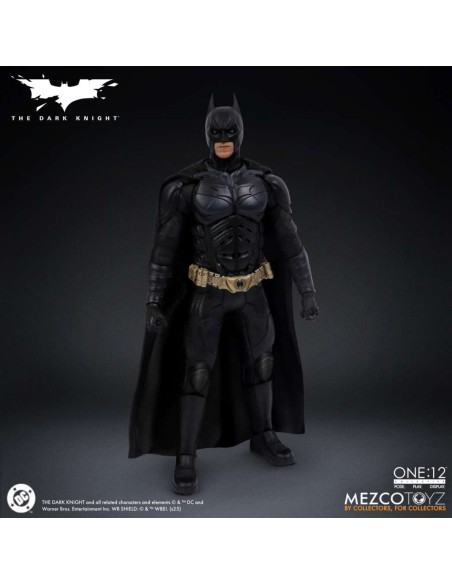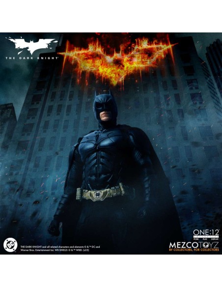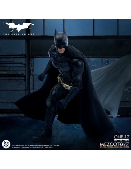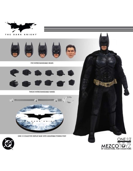 Batman indossa un costume da pipistrello tattico, fedele all'originale, con piastre scolpite e mantello snodabile, con un'armatura dettagliata dal collo agli stivali. Per la prima volta in una action figure della One:12 Collective, Batman presenta nuove espressioni facciali intercambiabili e oculari che consentono una moltitudine di espressioni facciali distinte. È incluso un ritratto di Bruce Wayne senza maschera con le sembianze di Christian Bale.