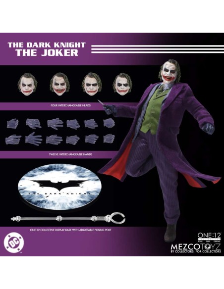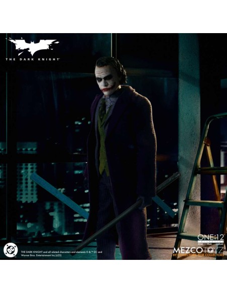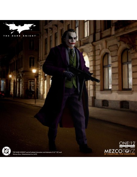 L'autoproclamato agente del caos è armato con un assortimento di strumenti letali e accessori fedeli allo schermo, tra cui granate, coltelli, armi da fuoco, effetti proiettile e una carta da gioco: il Joker porta il suo inconfondibile marchio di caos a Gotham. Sia la sua mitragliatrice che la sua pistola sono dotate di caricatori rimovibili ed effetti speciali per pose dinamiche. Ricrea l'iconico poster promozionale del film "Why so serious?" con il pannello espositivo incluso dietro cui Joker può posare.