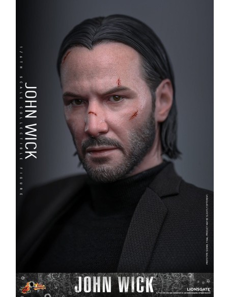 Sideshow e Hot Toys sono orgogliose di presentare la statuetta da collezione John Wick in scala 1/6, realizzata meticolosamente con il leggendario sicario. L'action figure di John Wick presenta una testa di nuova concezione con applicazioni di vernice rovinate dalla battaglia e occhi roteanti separati, completata da un'acconciatura meticolosamente scolpita e tirata indietro. Con dodici mani intercambiabili, dai pugni e gesti di comando all'impugnatura della tuta e della pistola, questa statuetta consente azioni dinamiche e pose espressive.