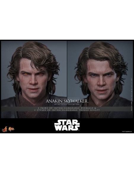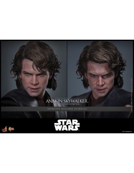Sideshow e Hot Toys sono onorati di presentare la statuetta da collezione Anakin Skywalker™ in scala 1/6, uno straordinario tributo all'interpretazione del personaggio da parte di Hayden Christensen. Realizzata con la massima cura dei dettagli, l'action figure di Star Wars presenta una scultura della testa di nuova concezione con due paia di bulbi oculari rotanti intercambiabili e due stili di frange intercambiabili per riflettere l'espressione di Anakin, segnata dalla battaglia, in continua evoluzione. Per la prima volta, i collezionisti possono alternare realistici bulbi oculari con iride blu e bulbi oculari con iride gialla Sith per evidenziare il suo drammatico passaggio al lato oscuro.