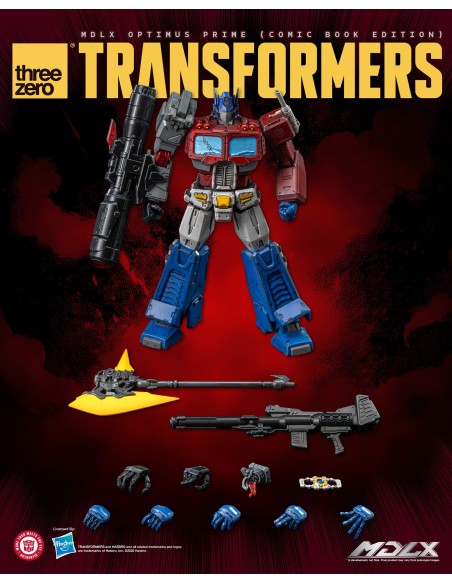 L'MDLX Optimus Prime (Comic Book Edition) di threezero è una versione ridisegnata del classico Leader degli Autobot, ispirata alla sua apparizione nella serie a fumetti Energon Universe. Questa edizione non solo include una scultura della testa ridisegnata e dettagliata, ma presenta anche decalcomanie con il design del parabrezza danneggiato in battaglia sul petto e effetti di vernice fortemente invecchiati su tutto il corpo. Questa versione include anche una spalla rotta intercambiabile che può essere sostituita con il braccio destro mozzato di Megatron con Fusion Canon!