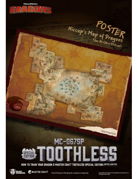Ogni statuetta include un'esclusiva Mappa dei Draghi di Hiccup in formato A1 ed è limitata a soli 3.000 pezzi in tutto il mondo, completa di targhetta metallica numerata e certificato.
