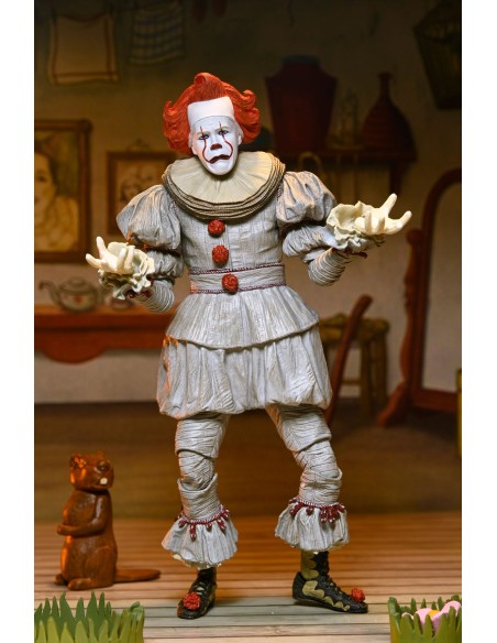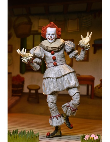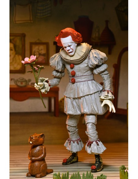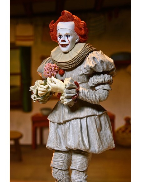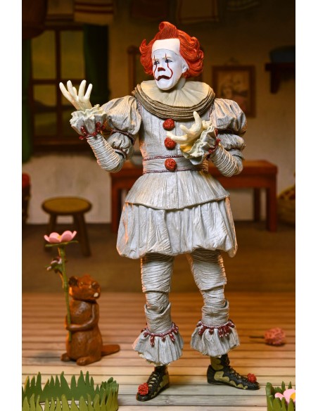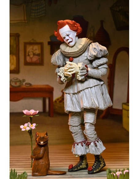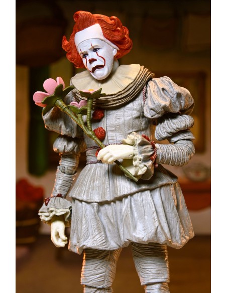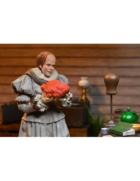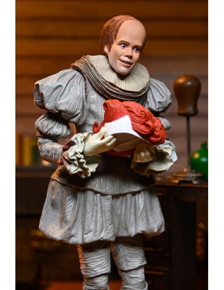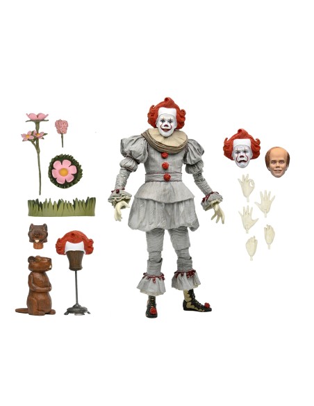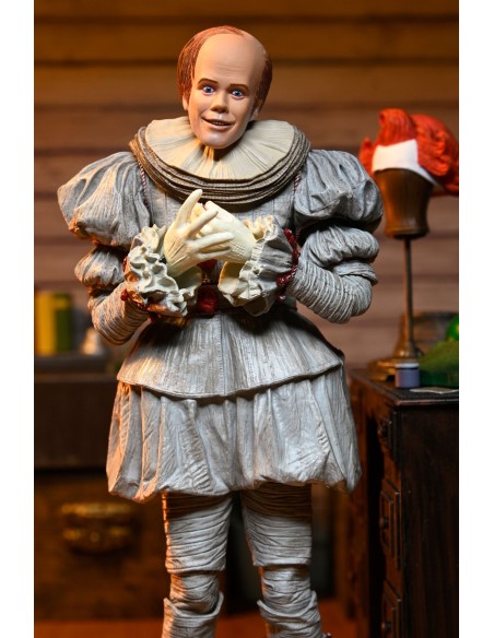 Dal mondo contorto dell'autore horror Stephen King e della nuova serie HBO IT: Welcome to Derry, arriva una nuova action figure Ultimate di NECA! Prima che Pennywise fosse un clown demoniaco, era Bob Gray, un artista circense che interpretava un clown sul palco. Basata sulle scene di flashback della serie, questa action figure da 18 cm include diverse teste e mani intercambiabili, oggetti di scena, fiori, un castoro di legno, una parrucca e un supporto per parrucca. Viene fornita in una confezione con finestra, perfetta per i collezionisti, con sportello anteriore apribile.