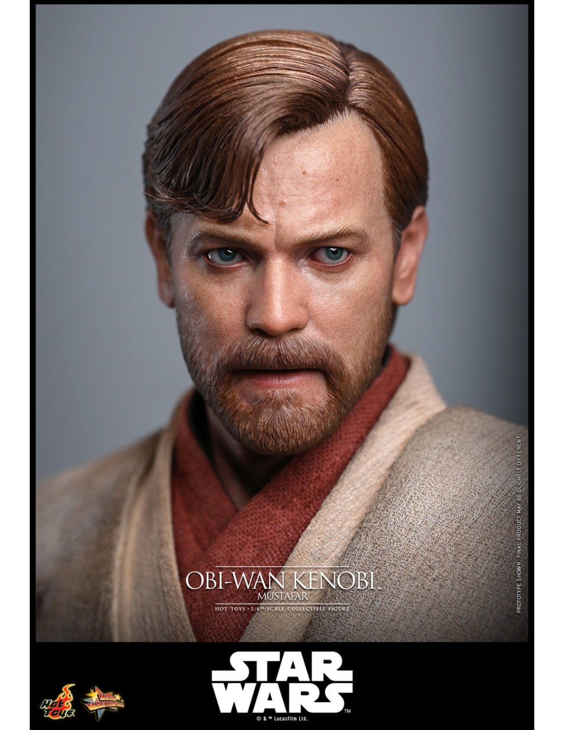 Sideshow e Hot Toys sono onorati di presentare la statuetta da collezione di Obi-Wan Kenobi™ (Mustafar) in scala 1/6, che cattura l'interpretazione di Ewan McGregor in "La vendetta dei Sith" con meticolosa attenzione ai dettagli. La testa scolpita presenta due occhi rotanti e un'acconciatura corta castano scuro finemente scolpita, completata da una ciocca di capelli in lana impiantata sulla frangia per aumentarne il realismo. Il suo volto porta il peso di quel duello fatale, con una texture della pelle realistica e dettagli della barba.