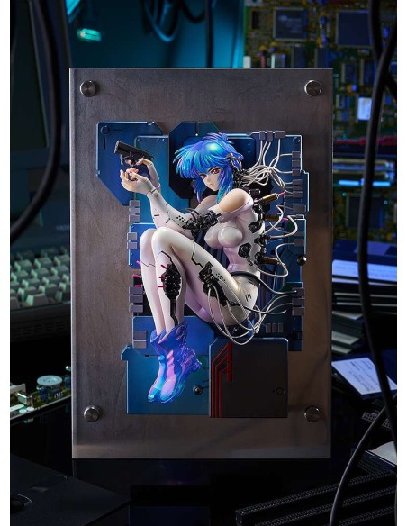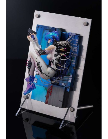 Dal manga "Ghost in the Shell" arriva una figure in scala di Motoko Kusanagi! La figure si basa sull'illustrazione di copertina del primo volume tankobon, con dettagli aggiuntivi, e può essere esposta in piedi come una cornice. Scolpita da Chieri, uno scultore attivo dagli anni '80, la figure conserva l'atmosfera dell'epoca. I capelli e gli stivali di Motoko sono placcati in oro come una mimetizzazione ottica, e la sua espressione cambia a seconda dell'angolazione da cui si guarda la figure. Il contrasto tra le texture della sua tuta e le parti meccaniche è uno dei tanti punti di forza visivi che la figure ha da offrire. Per i dettagli delle corde sono stati utilizzati veri e propri cavi. La base è realizzata in metallo per un aspetto realistico. Fan della serie, assicuratevi di aggiungere questa impressionante figure alla vostra collezione!