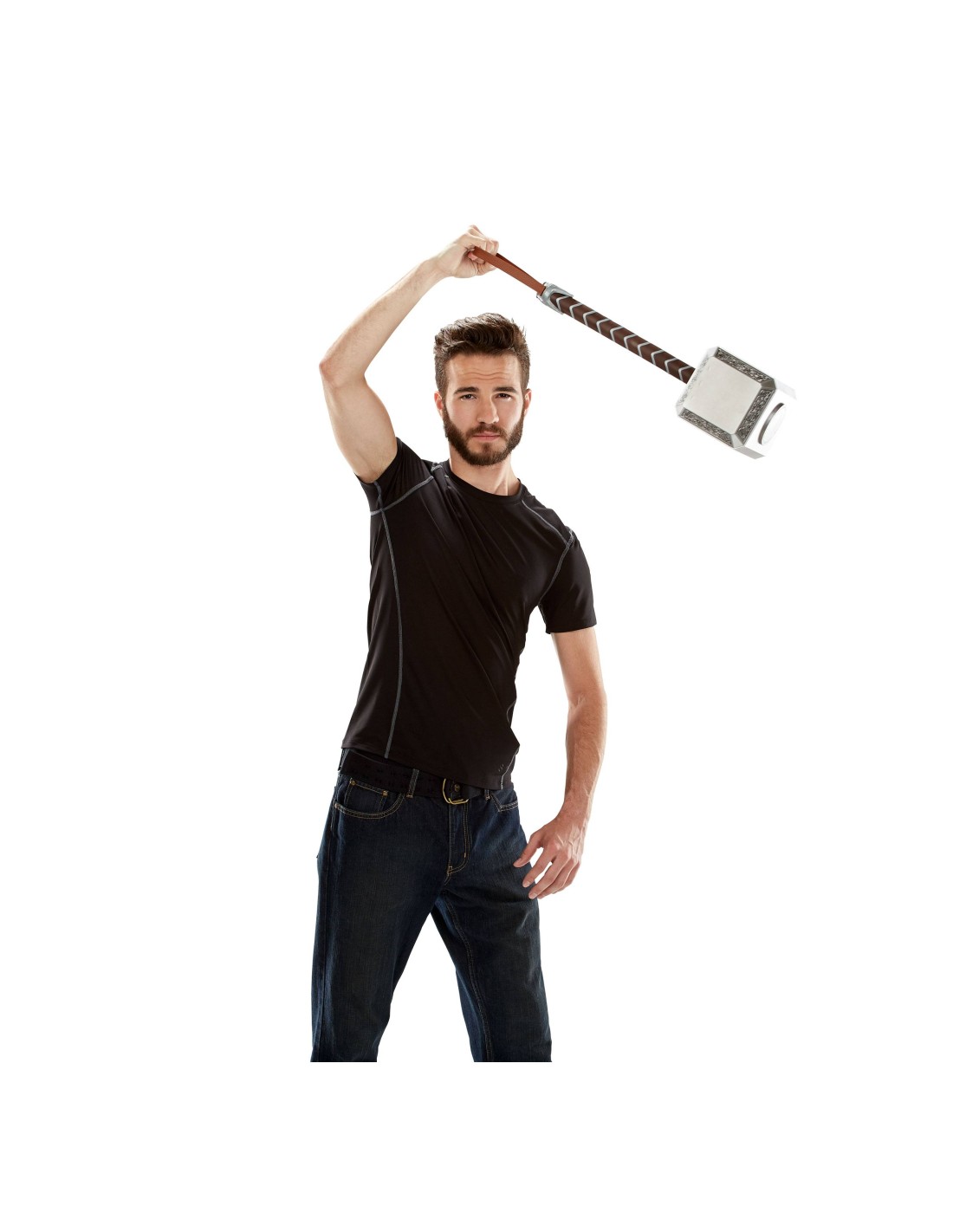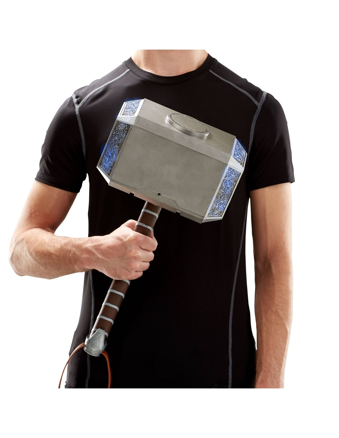 Articoli premium per il gioco di ruolo, altamente dettagliati e in scala 1:1, arrivano nella linea Marvel Legends! Il martello elettronico Mjolnir da 50 cm include luci, effetti sonori e una funzione luminosa ad attivazione vocale che rivela il simbolo di Odino, oltre a un cinturino da polso e un pomolo dal design autentico. L'esterno del martello vanta una notevole attenzione ai dettagli e un design splendido e robusto.