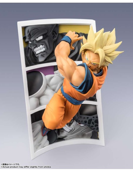 Ispirata alla bellissima illustrazione in cui Goku affronta i suoi più grandi nemici, ecco la nuova Figuarts Zero di Tamashii Nations dedicata al mondo di Dragon Ball Z! Non solo Super Saiyan Son Goku, ma anche Piccolo, Frieza e Cell prendono vita in questa fantastica scultura!