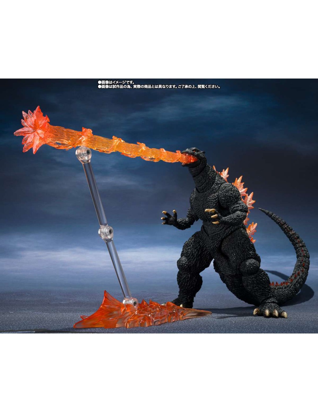 La colorazione di Godzilla si basa su vari scatti dell’epoca, immaginando la scena del “Burning G-Spark Heat Ray”. La sua ampia gamma di articolazioni consente diverse pose e, esponendo insieme tutti i contenuti del set, è possibile ricreare la scena della battaglia climatica.