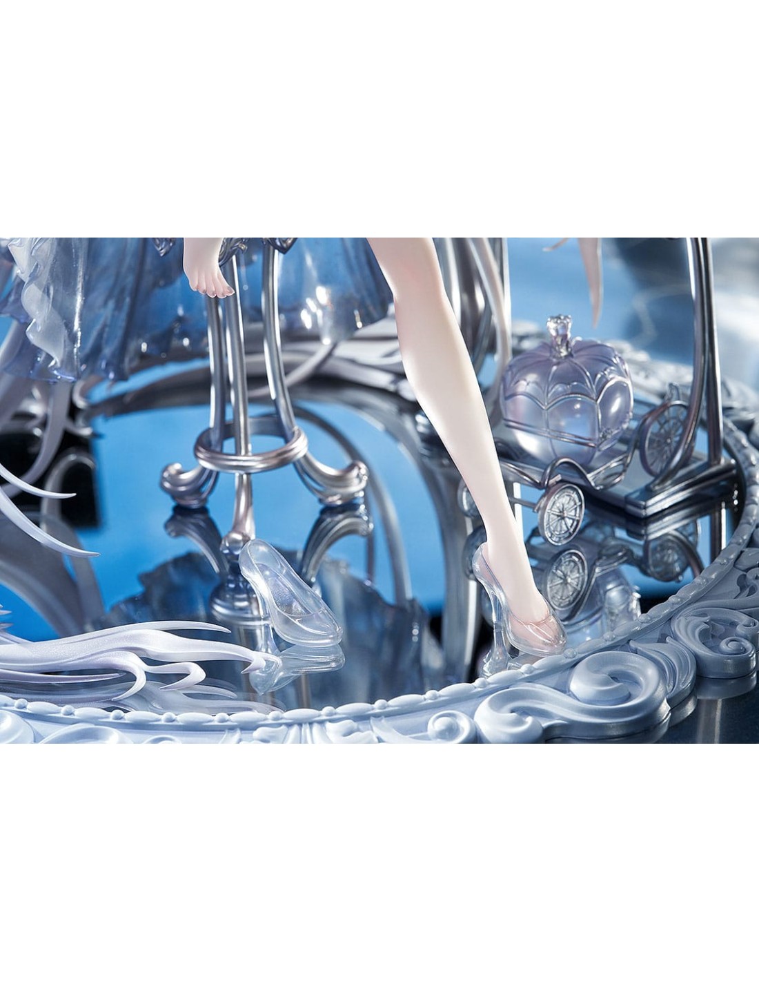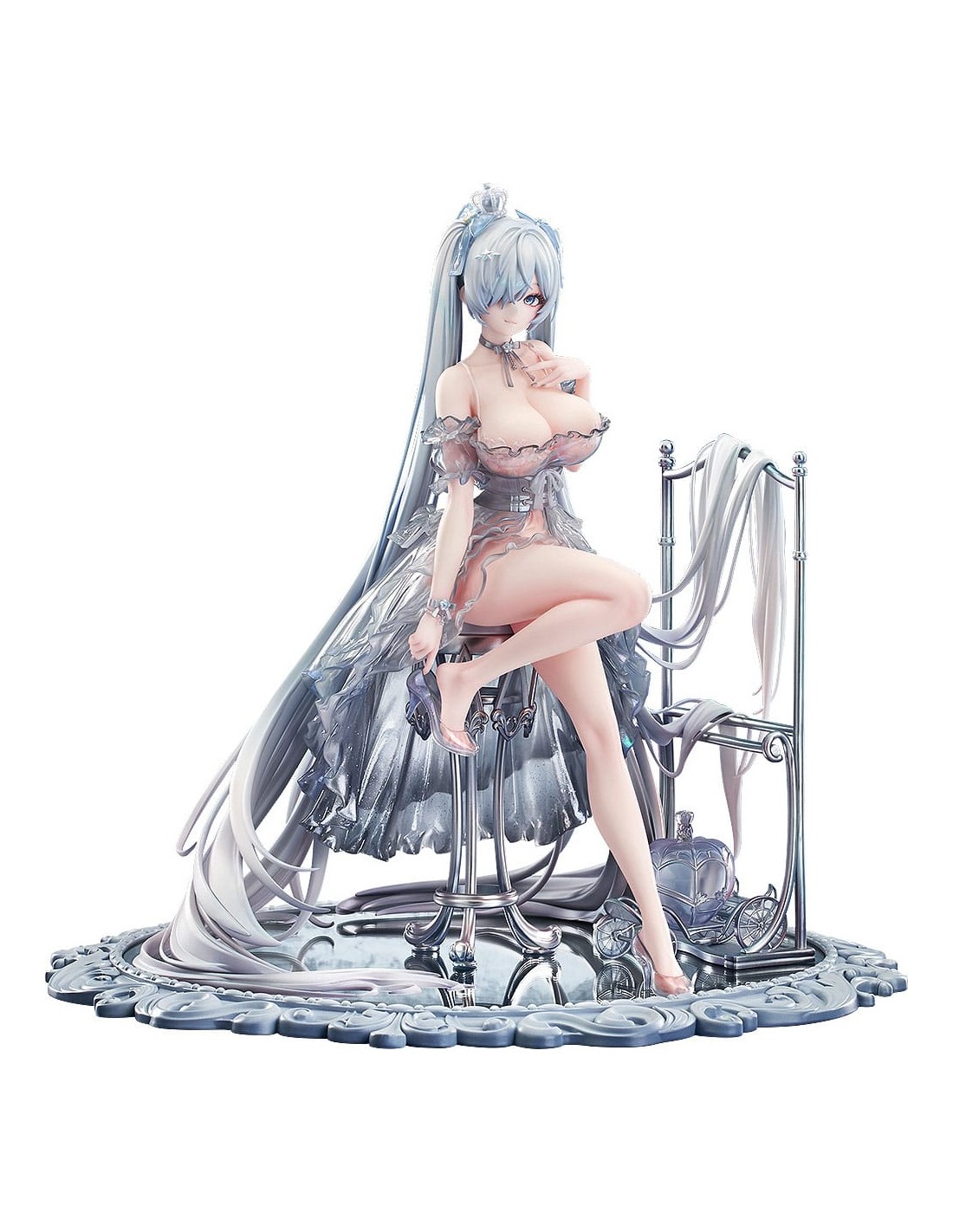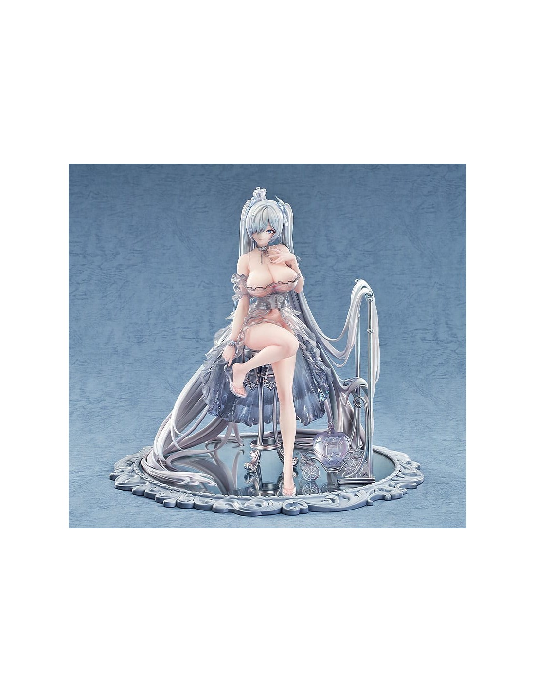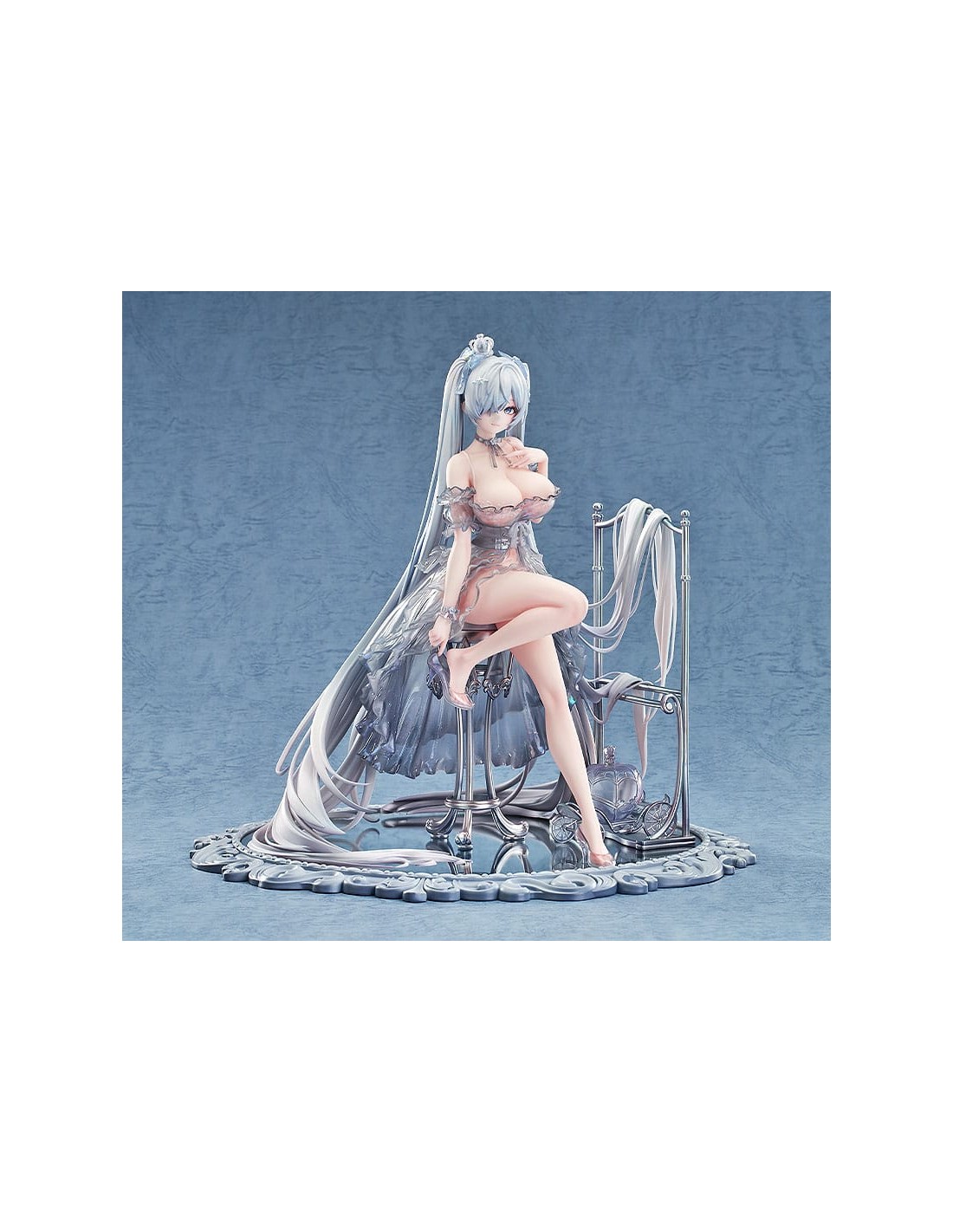 Dal popolare gioco per dispositivi mobili "GODDESS OF VICTORY: NIKKE" arriva una figura in scala 1/7 di Cenerentola nel suo abito da Principessa di Vetro! Cenerentola è stata catturata in una figura seduta elegantemente su una base a specchio, vestita con un abito sontuoso. La gonna è stata accuratamente dipinta per conferirle un aspetto lucido e strutturato. I suoi lunghi capelli sono stati scolpiti per drappeggiare naturalmente sul resto della figura, conferendole un aspetto etereo. Le scarpette di vetro non solo conferiscono all'abito un aspetto sognante, ma permettono anche di vedere le delicate linee dei piedi di Cenerentola attraverso di esse, enfatizzandone la squisita bellezza. Le scarpette sono anche rimovibili, consentendo una diversa opzione di visualizzazione. Tutti gli elementi dell'illustrazione originale sono stati fedelmente catturati in una figura e accuratamente dipinti per una sensazione lucida, simile al vetro. La base a specchio permette inoltre di vedere e apprezzare la figura da diverse angolazioni. Assicurati di aggiungere la splendida Cenerentola: Principessa di Vetro alla tua collezione!