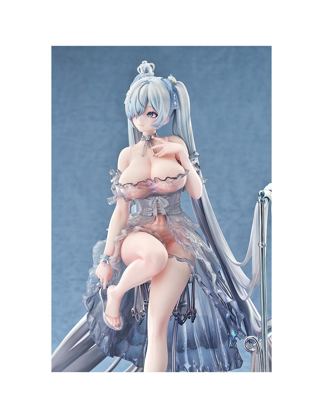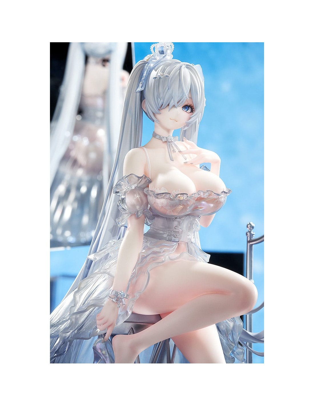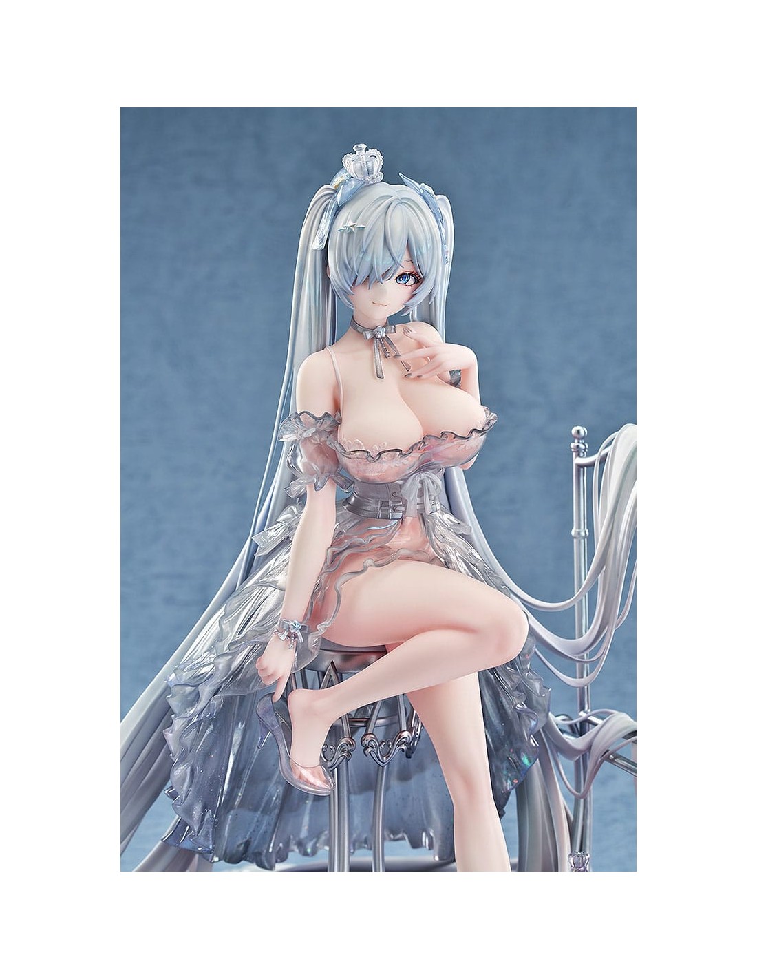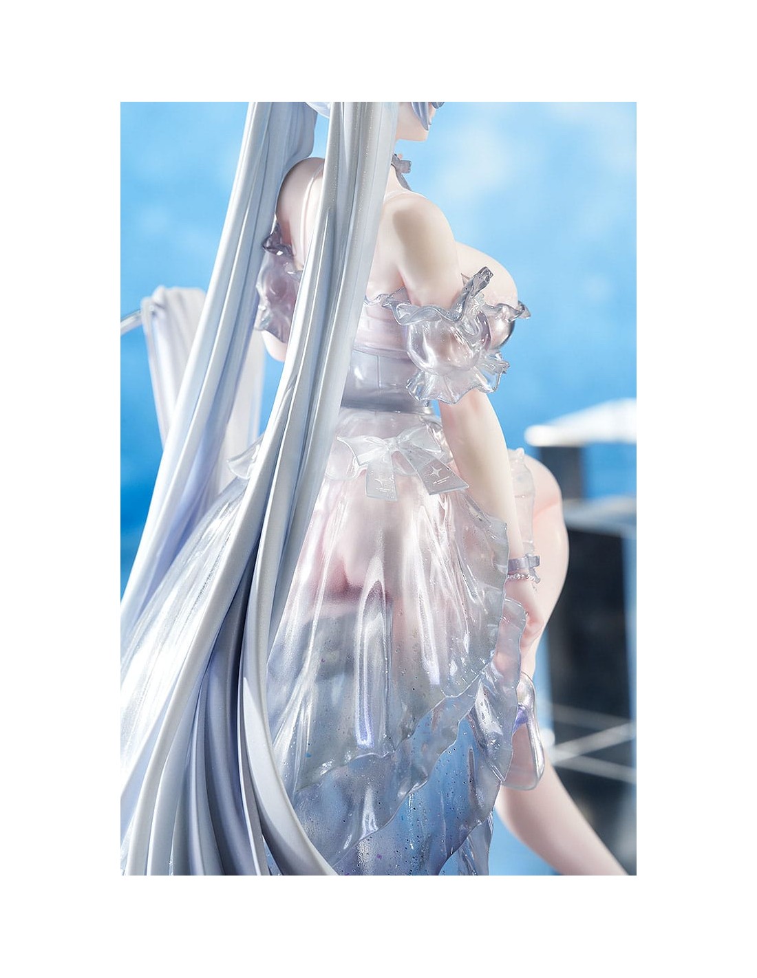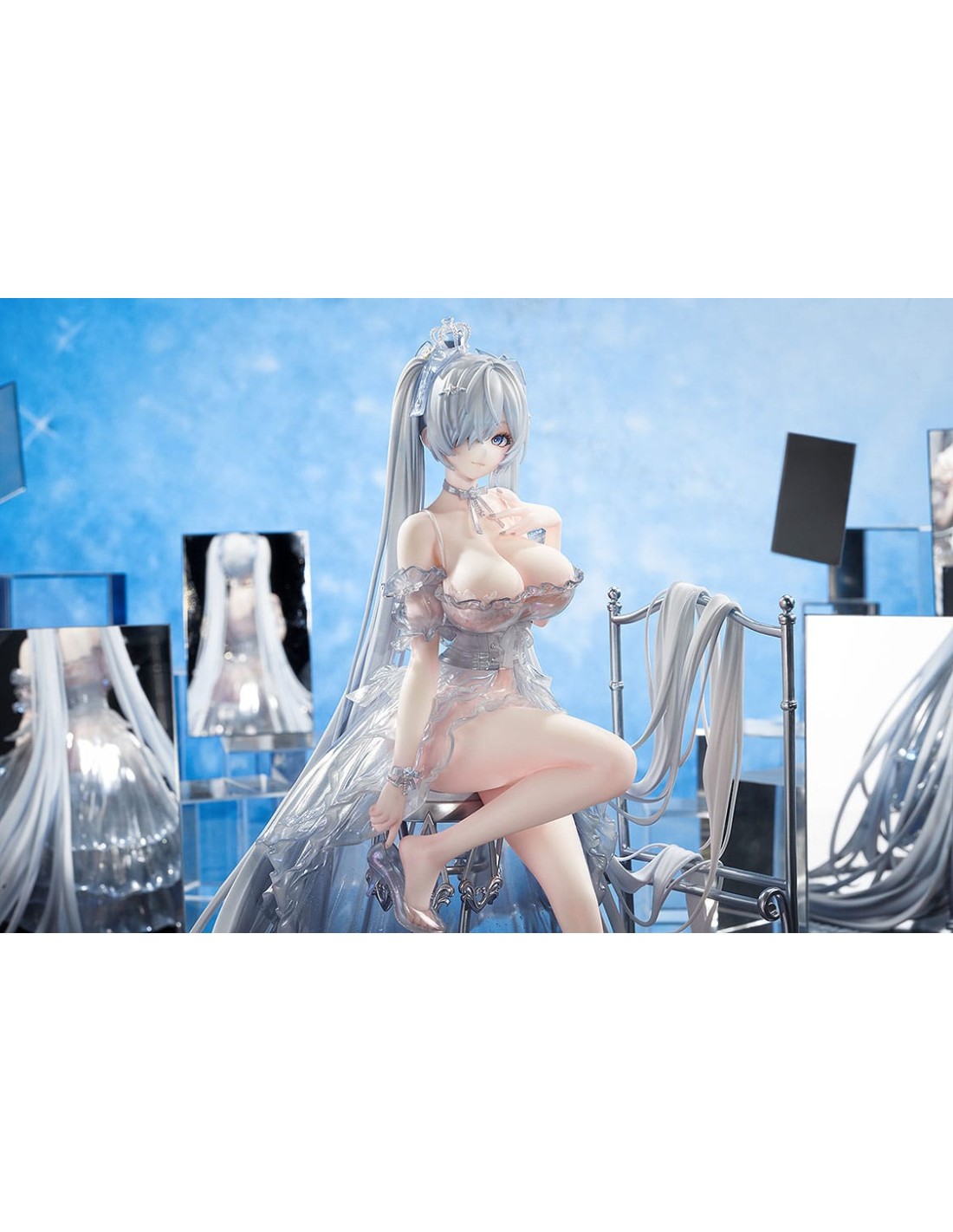 Dal popolare gioco per dispositivi mobili "GODDESS OF VICTORY: NIKKE" arriva una figura in scala 1/7 di Cenerentola nel suo abito da Principessa di Vetro! Cenerentola è stata catturata in una figura seduta elegantemente su una base a specchio, vestita con un abito sontuoso. La gonna è stata accuratamente dipinta per conferirle un aspetto lucido e strutturato. I suoi lunghi capelli sono stati scolpiti per drappeggiare naturalmente sul resto della figura, conferendole un aspetto etereo. Le scarpette di vetro non solo conferiscono all'abito un aspetto sognante, ma permettono anche di vedere le delicate linee dei piedi di Cenerentola attraverso di esse, enfatizzandone la squisita bellezza. Le scarpette sono anche rimovibili, consentendo una diversa opzione di visualizzazione. Tutti gli elementi dell'illustrazione originale sono stati fedelmente catturati in una figura e accuratamente dipinti per una sensazione lucida, simile al vetro. La base a specchio permette inoltre di vedere e apprezzare la figura da diverse angolazioni. Assicurati di aggiungere la splendida Cenerentola: Principessa di Vetro alla tua collezione!