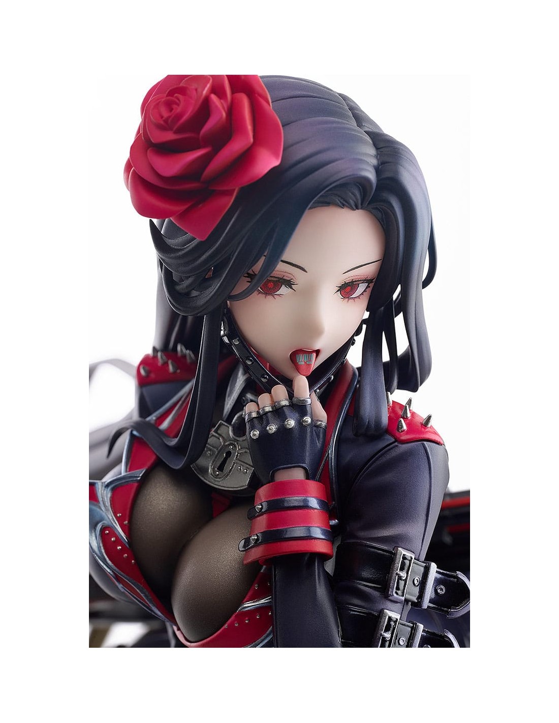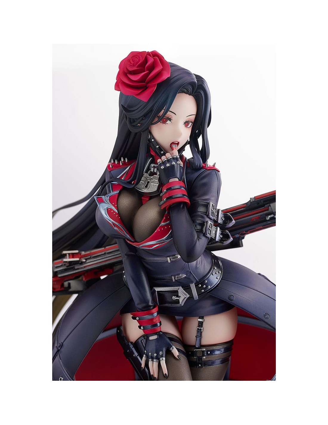 Dal popolare gioco per smartphone "GODDESS OF VICTORY: NIKKE" arriva una statuetta in scala di Maiden, un membro della squadra Extrinsic. Questa statuetta cattura fedelmente la posa drammatica di Maiden mentre abbassa la maschera per scatenare la sua abilità "Kotodama", completa del codice a barre inciso sulla lingua. La sua gonna dinamica, l'accessorio per capelli a forma di rosa rossa, le punte sulle spalle e sugli stivali e l'enorme lucchetto sul collo sono stati tutti scolpiti con meticolosa attenzione ai dettagli. I lineamenti sorprendenti di Maiden, inclusi il petto e le cosce, sono stati accuratamente dipinti e texturizzati per esprimere perfettamente il suo fascino ammaliante. Assicurati di aggiungere Maiden alla tua collezione per vivere un momento speciale con lei!